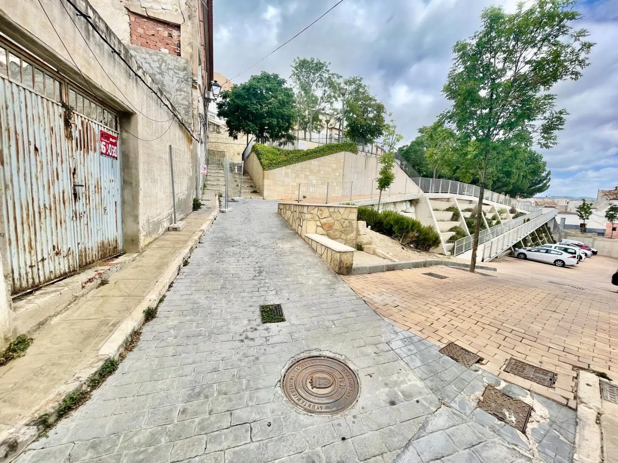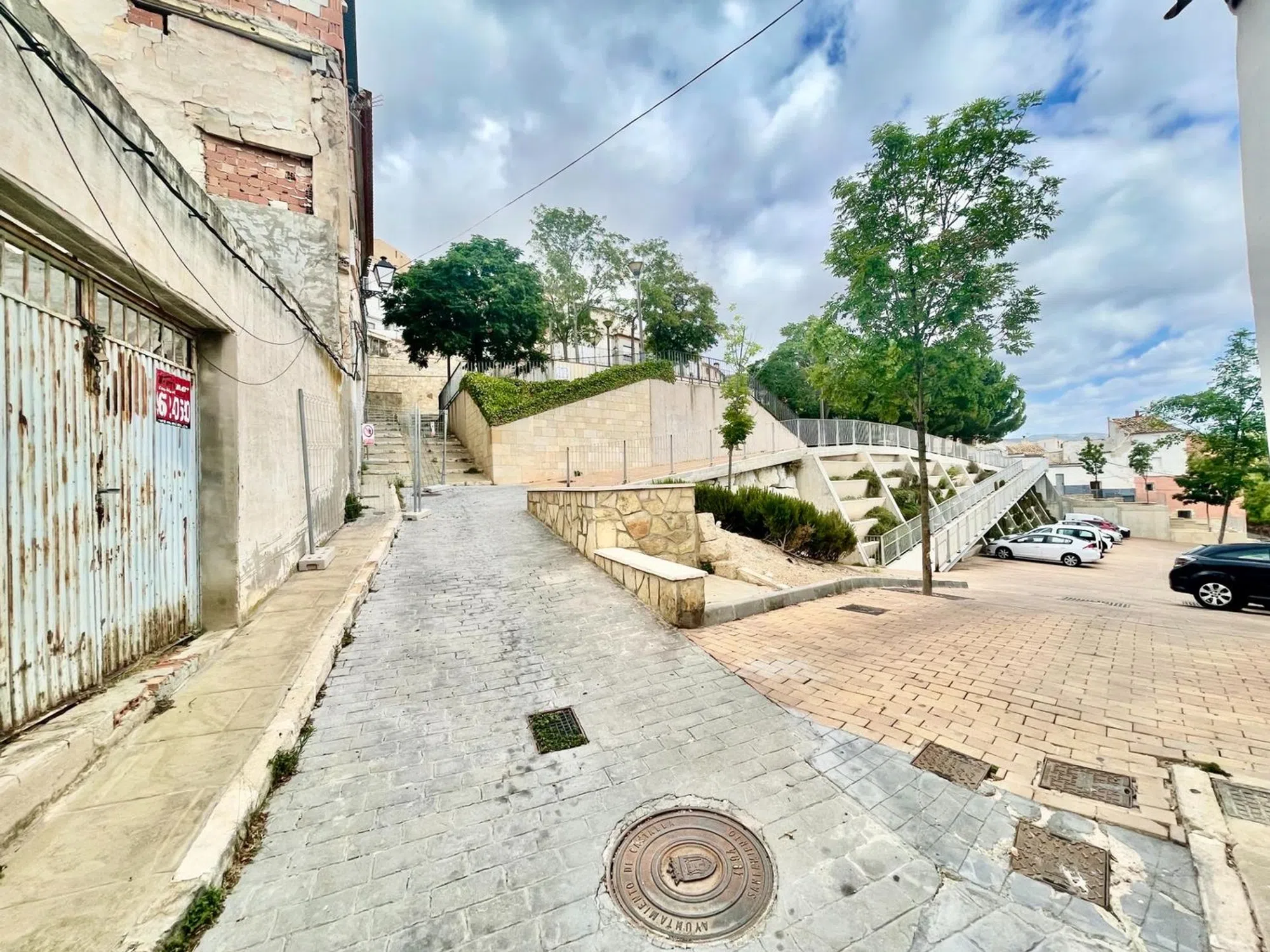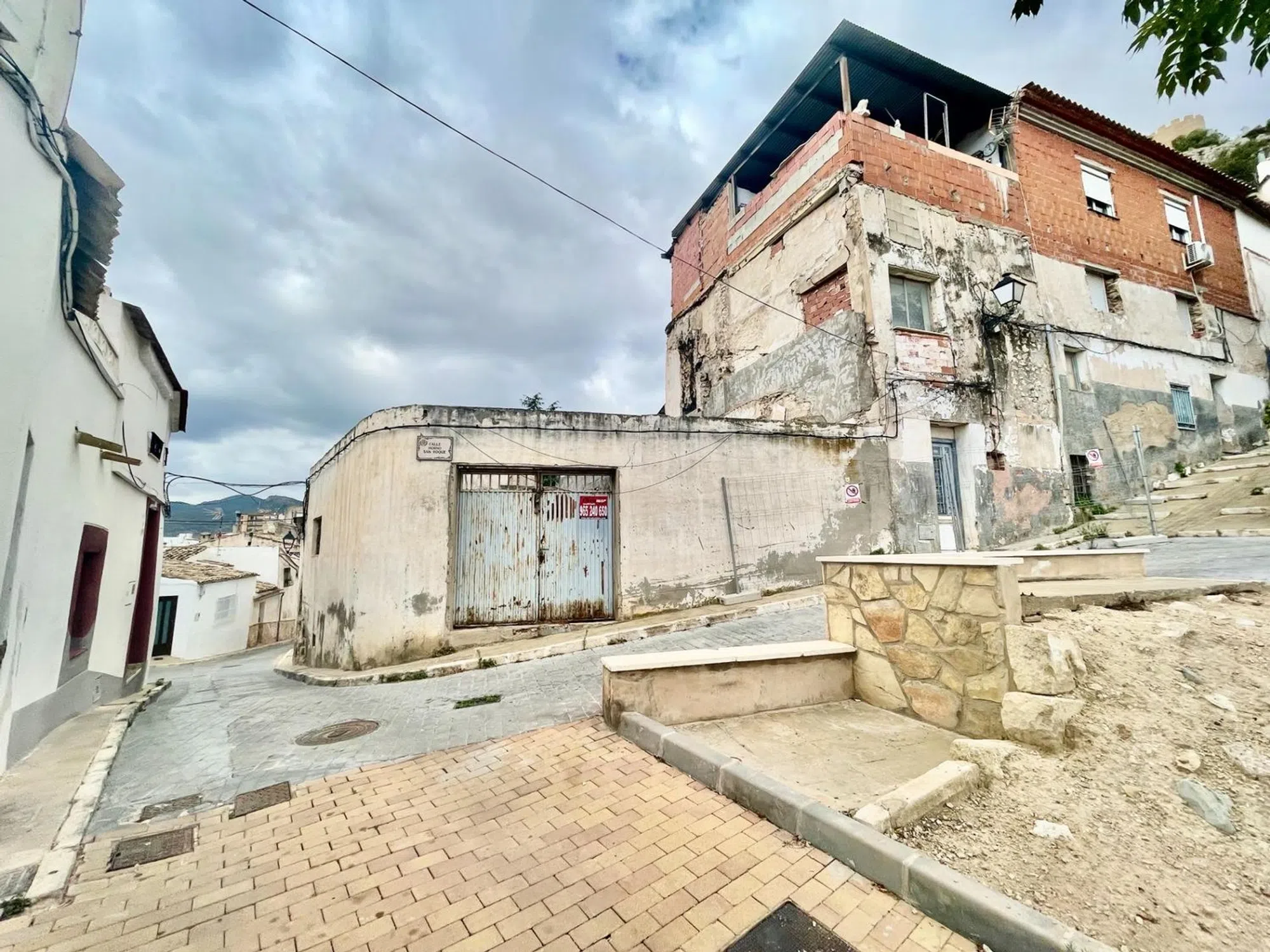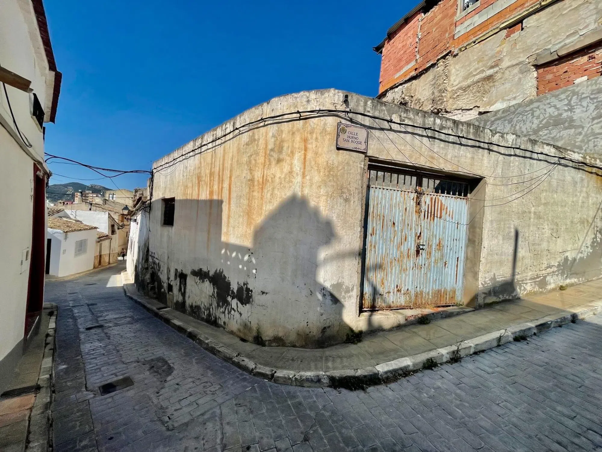 Solar Urbano en Casco Antiguo de Castalla, 70 m2 en esquina, Calle dels Armaris con Calle Horno San Roque, frente a la zona de aparcamiento.
