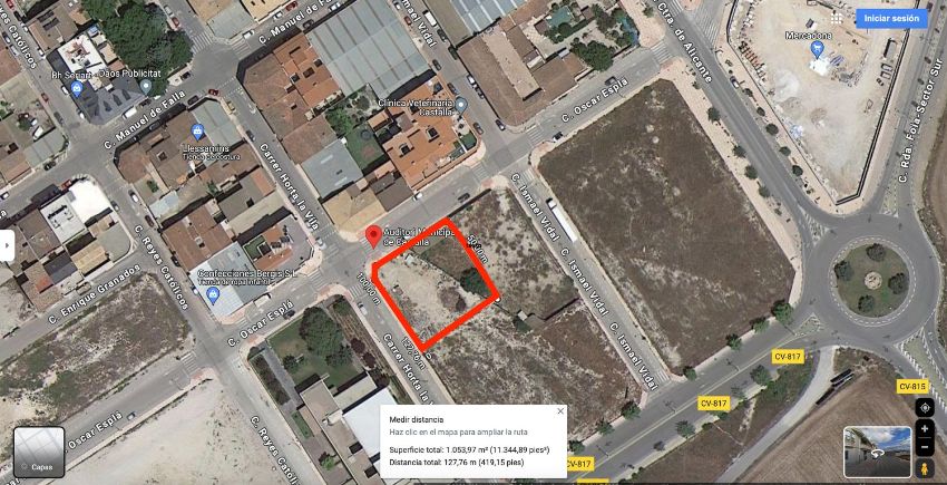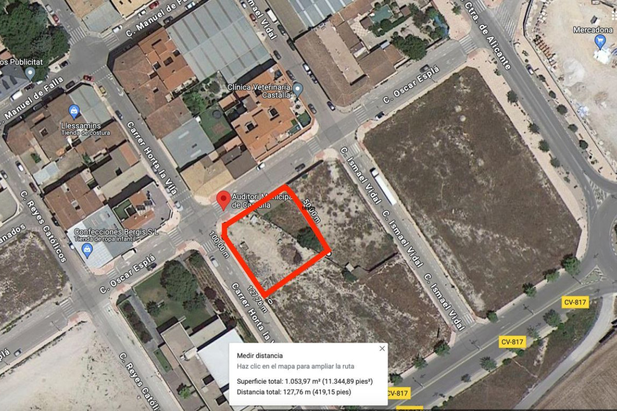 Suelo urbano esquina a dos calles. Perfecta ubicación enfrente del Auditorio de Castalla, a 100m del Mercadona, a 100m de Colegio Público e Instituto y a 100m del Centro de Salud.