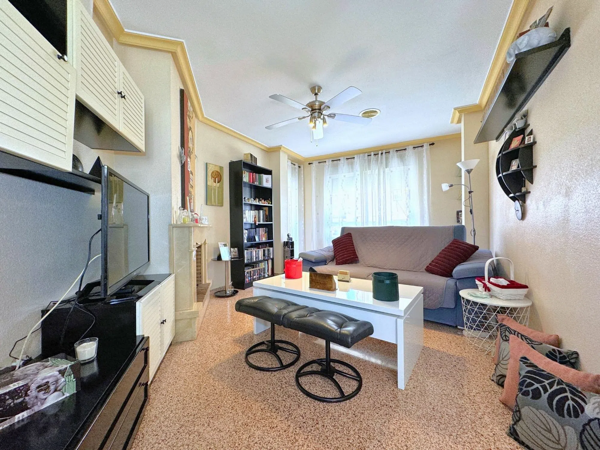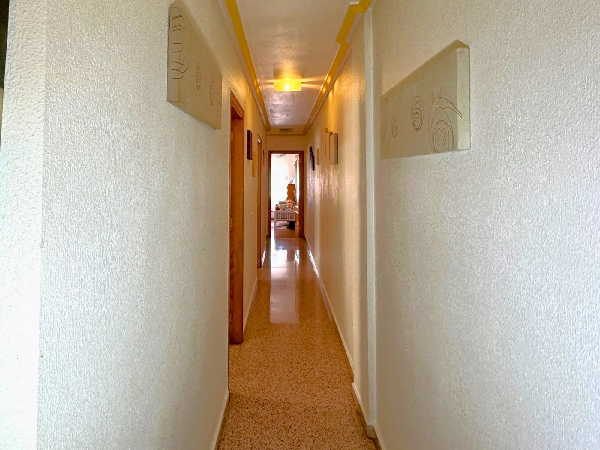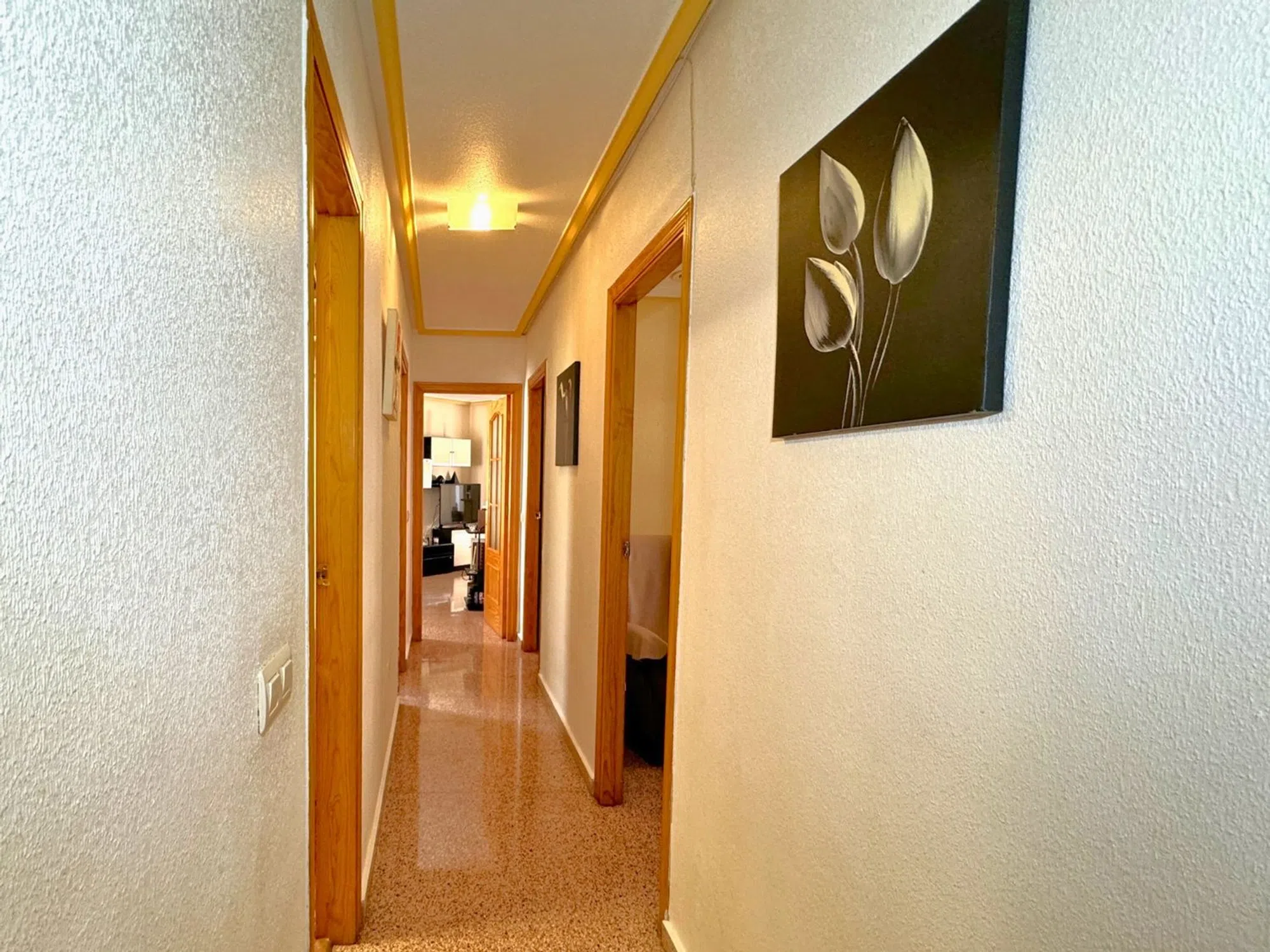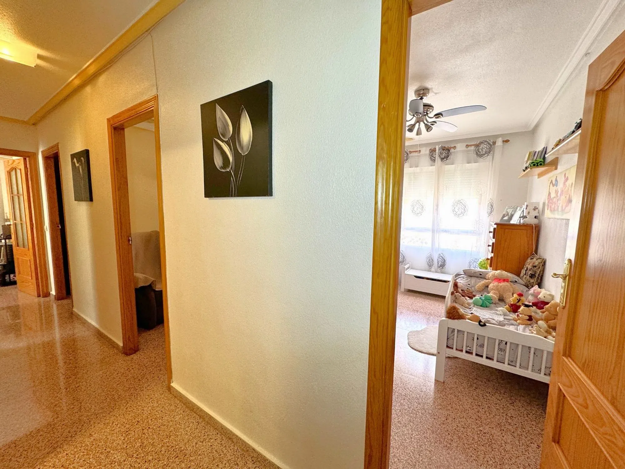 Bedrums Real Estate presenta este amplio y luminoso piso en Catral, ubicado en una tranquila zona residencial paralela a la vía principal del municipio, con todos los servicios al alcance y bien conectado con las principales localidades de la comarca. Con una superficie construida de 117 m², la vivienda se sitúa en la segunda planta de un edificio en esquina de solo tres alturas, con seis vecinos por planta. Su orientación suroeste le garantiza una excelente entrada de luz natural durante todo el día y una ventilación cruzada muy agradable. Se distribuye en cuatro dormitorios, dos cuartos de baño, salón-comedor con chimenea, cocina independiente completamente equipada, galería y dos terrazas privadas. Entre sus acabados destacan los suelos de mármol y porcelánico en diferentes estancias, así como los armarios empotrados en uno de los dormitorios. Se vende semiamueblado, lo que facilita su acondicionamiento inmediato. La ubicación es ideal para quienes buscan un entorno cómodo y funcional, rodeado de supermercados, farmacia, instituto, polideportivo, zonas verdes y comercios locales. Además, se encuentra a solo 20 minutos en coche de la playa, a 16 km de Elche y a 25 km de Torrevieja. Una excelente oportunidad para familias o como inversión en una zona con alta demanda residencial.