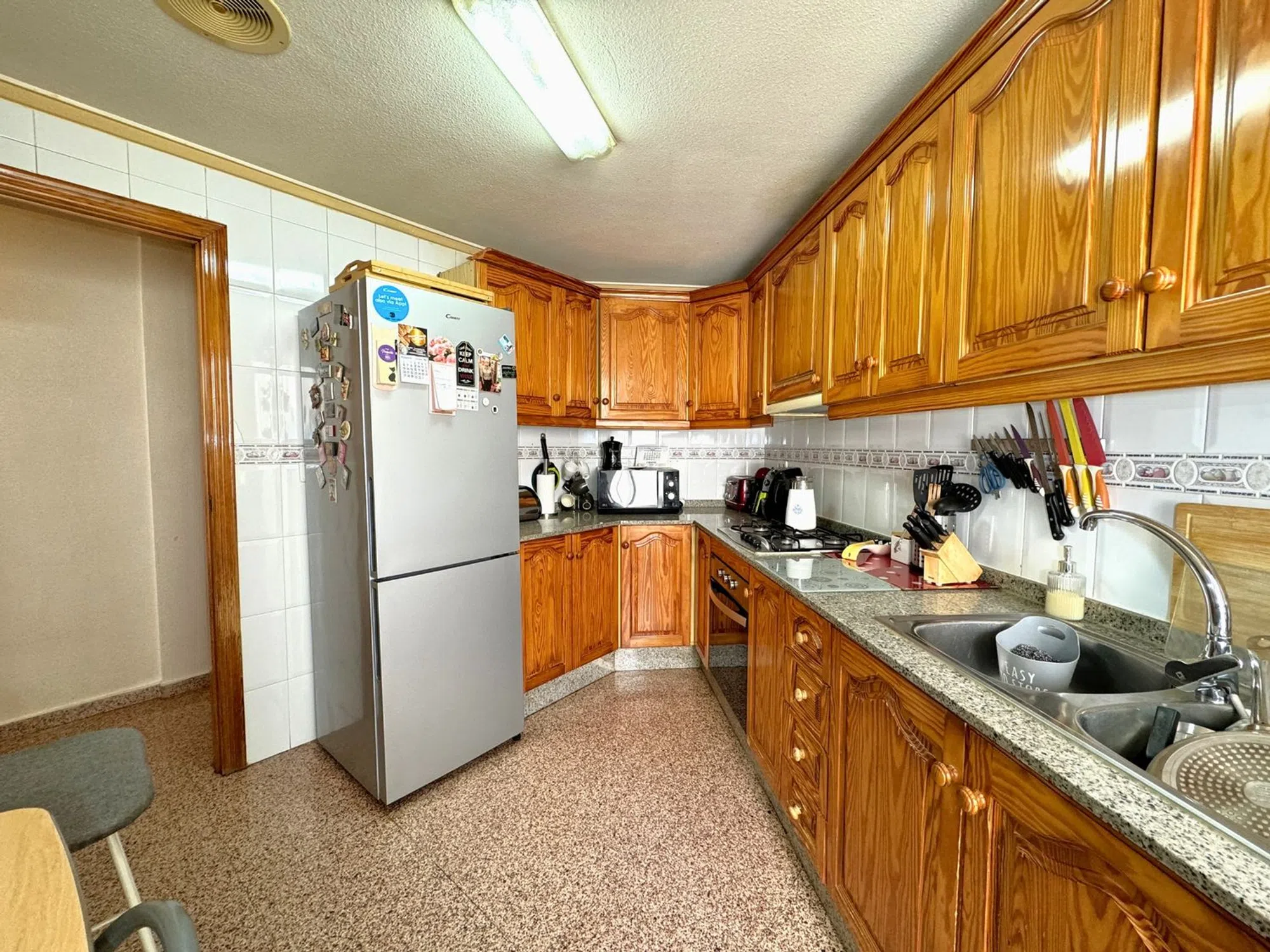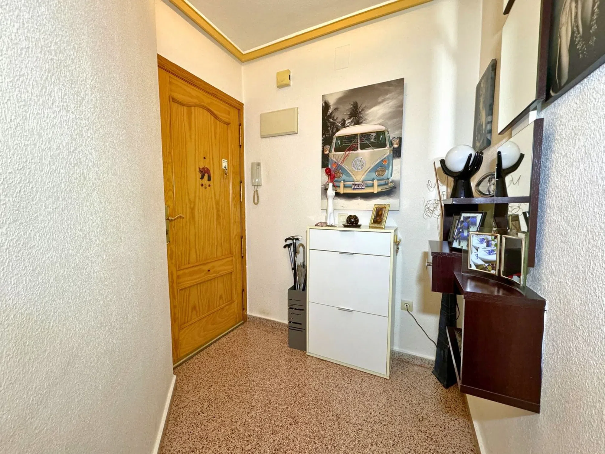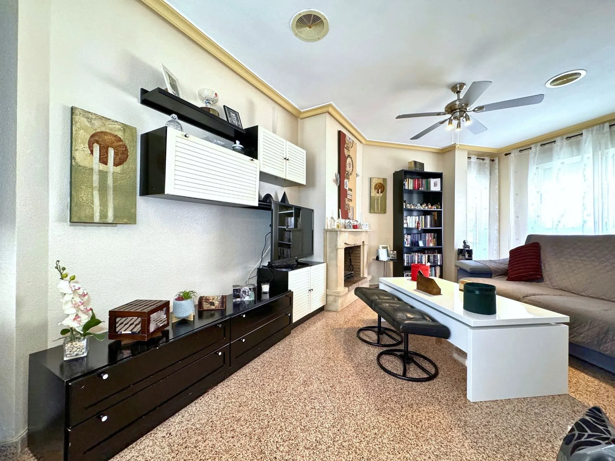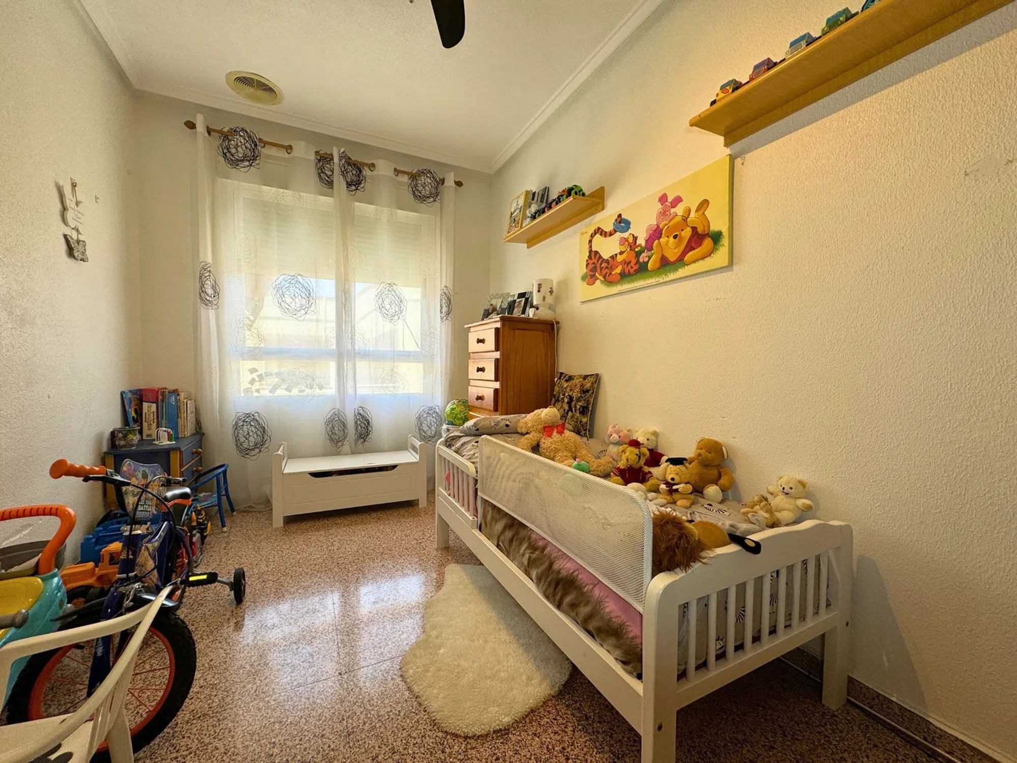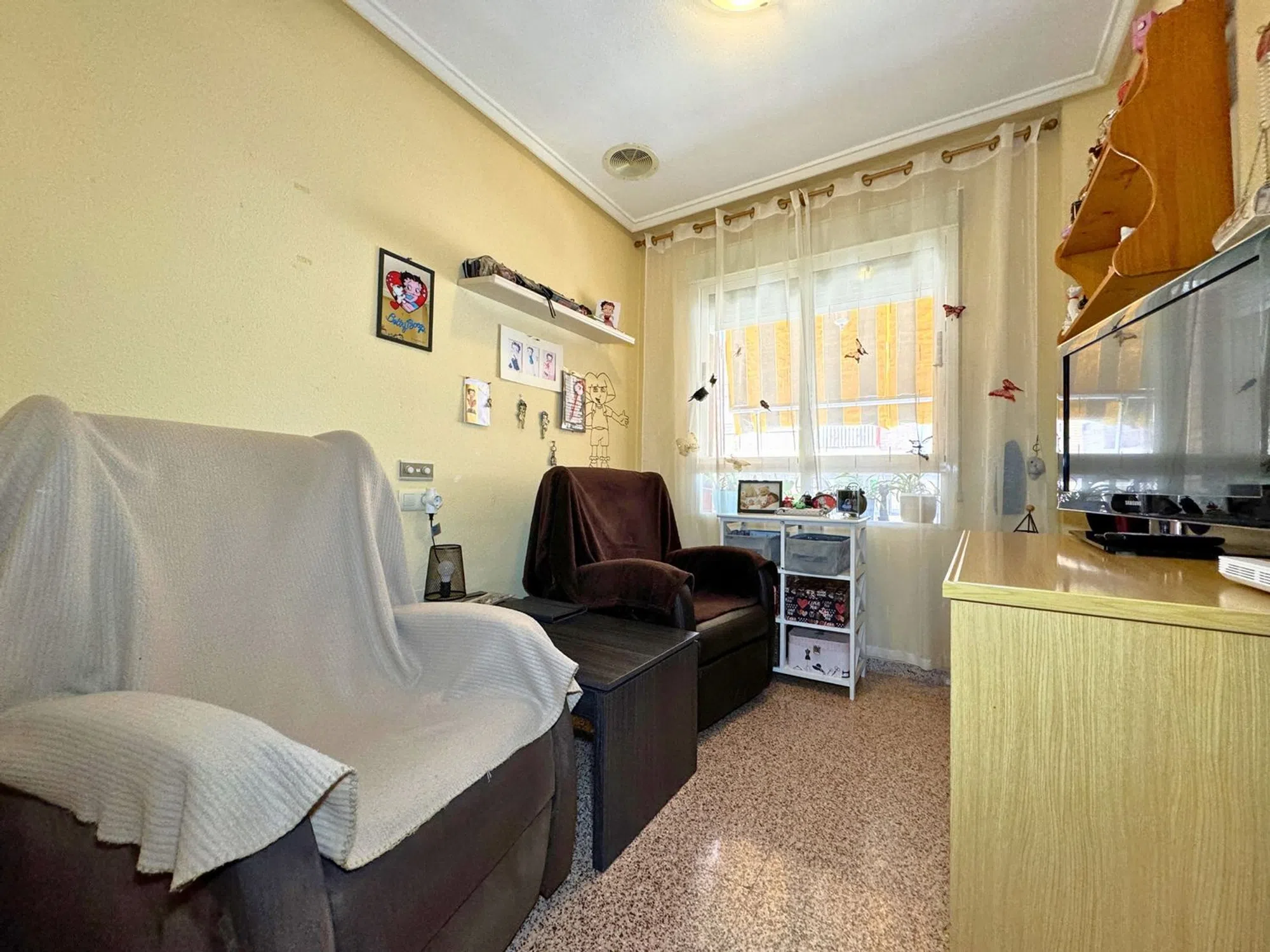 Bedrums Real Estate presenta este amplio y luminoso piso en Catral, ubicado en una tranquila zona residencial paralela a la vía principal del municipio, con todos los servicios al alcance y bien conectado con las principales localidades de la comarca. Con una superficie construida de 117 m², la vivienda se sitúa en la segunda planta de un edificio en esquina de solo tres alturas, con seis vecinos por planta. Su orientación suroeste le garantiza una excelente entrada de luz natural durante todo el día y una ventilación cruzada muy agradable. Se distribuye en cuatro dormitorios, dos cuartos de baño, salón-comedor con chimenea, cocina independiente completamente equipada, galería y dos terrazas privadas. Entre sus acabados destacan los suelos de mármol y porcelánico en diferentes estancias, así como los armarios empotrados en uno de los dormitorios. Se vende semiamueblado, lo que facilita su acondicionamiento inmediato. La ubicación es ideal para quienes buscan un entorno cómodo y funcional, rodeado de supermercados, farmacia, instituto, polideportivo, zonas verdes y comercios locales. Además, se encuentra a solo 20 minutos en coche de la playa, a 16 km de Elche y a 25 km de Torrevieja. Una excelente oportunidad para familias o como inversión en una zona con alta demanda residencial.