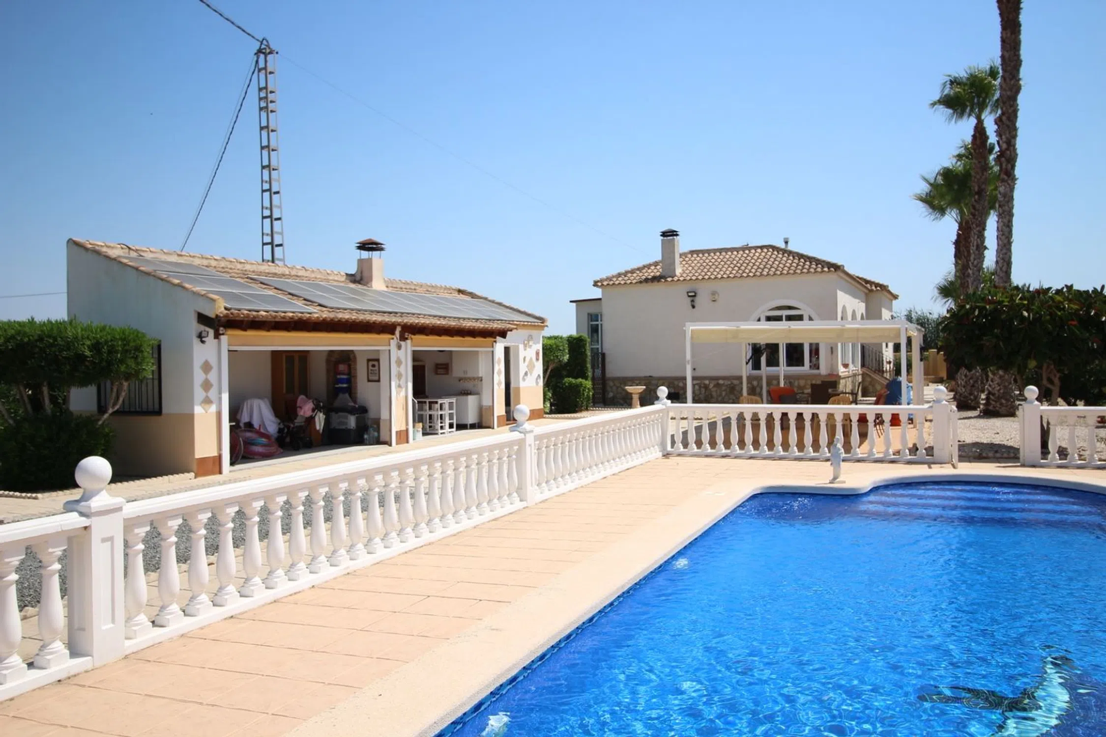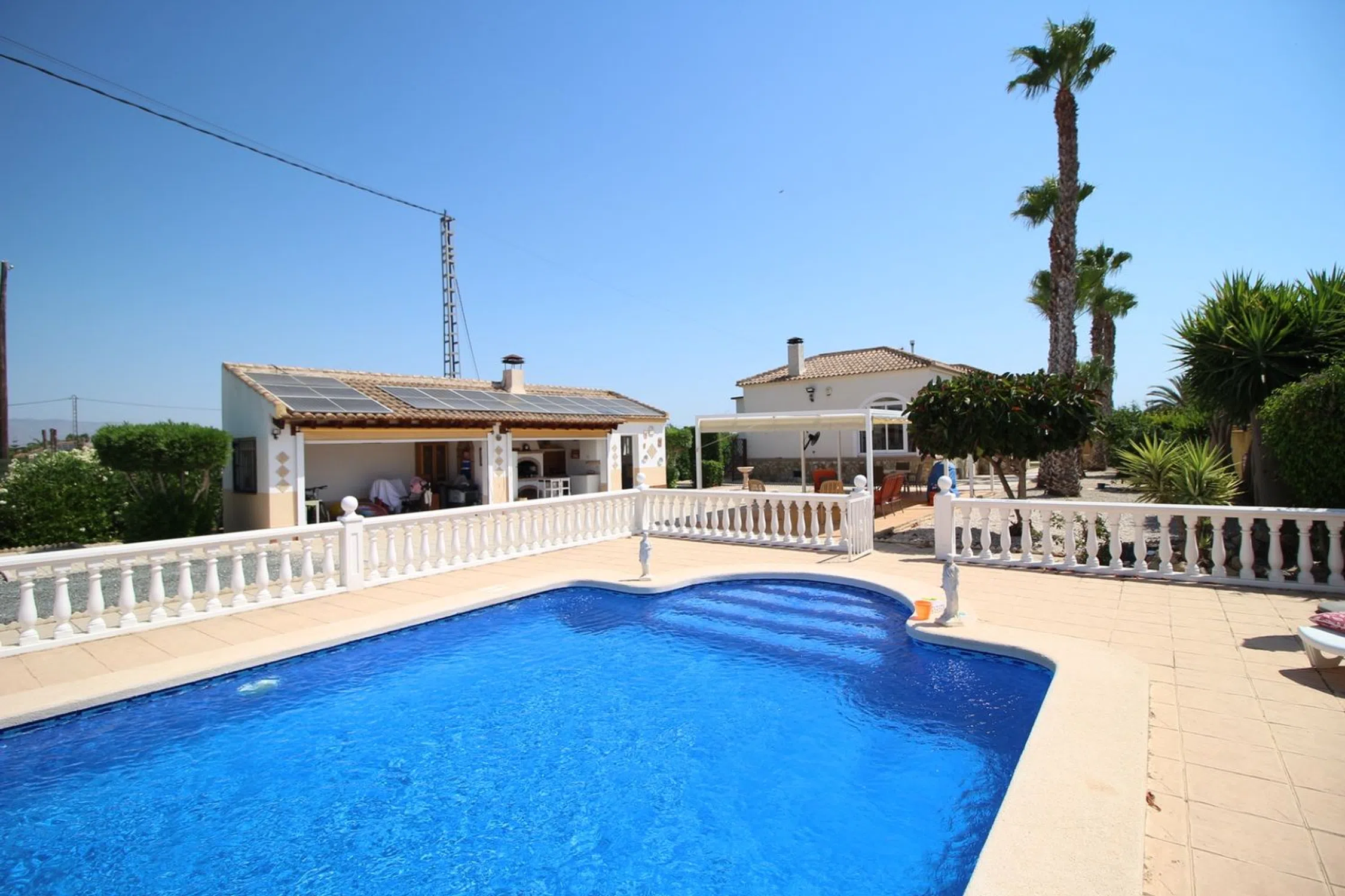 Ubicada en una amplia parcela de 2.000 m², esta encantadora casa de campo ofrece aproximadamente 220 m² construidos, con una distribución pensada para el confort y la vida relajada. La vivienda cuenta con cuatro dormitorios espaciosos, todos con armarios empotrados, y tres baños, uno de ellos ubicado en el exterior, ideal para disfrutar durante reuniones al aire libre o junto a la piscina. El baño familiar es funcional y bien equipado para el día a día. La cocina es de buen tamaño, con abundante espacio de almacenamiento y un lavadero independiente, lo que aporta practicidad a la rutina diaria. Las zonas de estar son amplias y luminosas, perfectas para descansar o recibir visitas. Para los amantes del exterior, la casa dispone de una zona de barbacoa, perfecta para compartir con familia y amigos. Además, cuenta con ventiladores de techo en todas las estancias, mosquiteras en todas las ventanas y un sistema de alarma para mayor tranquilidad. Entre las comodidades modernas se incluyen internet por fibra óptica y calefacción central a gas, lo que hace que esta propiedad sea perfecta para vivir todo el año. Una vivienda versátil y acogedora que combina el encanto del campo con la comodidad moderna.