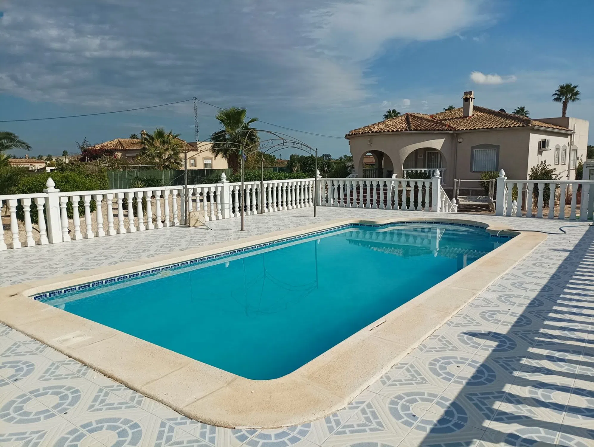 Bonito chalet independiente en Catral, dispone de 3 dormitorios y 2 baños (uno de ellos on suite), piscina privada de buen tamaño y zona de barbacoa / cocina de verano. La propiedad está totalmente cerrada con muro y valla, todas las ventanas tienen doble acristalamiento y mosquiteras. Aire acondicionado en todos los dormitorios y también en el salón. Chimenea, cocina independiente totalmente amueblada y con electrodomésticos. Gran parcela ajardinada y zona de aparcamiento con pérgola. Trastero, casita de herramientas y terraza /solárium. En una zona muy tranquila y con maravillosas vistas. No dude en contactarnos para visitar esta propiedad sin compromiso.