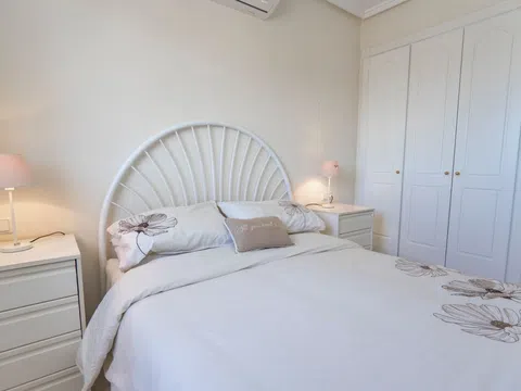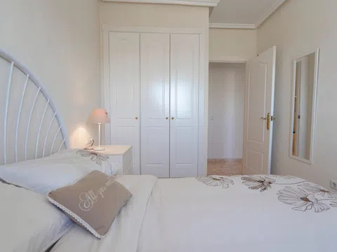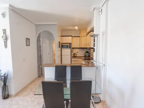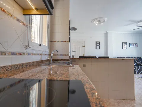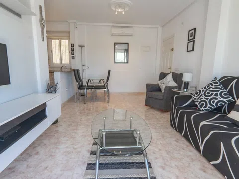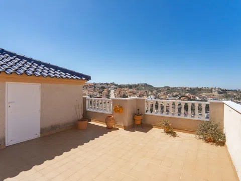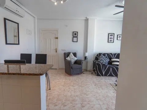 Enclavado en las tranquilas colinas de La Marquesa, este encantador apartamento en planta alta ofrece una combinación ideal de confort, comodidad y vistas cautivadoras. Con su posición elevada y acceso privado, esta casa de 2 dormitorios y 2 baños es perfecta para aquellos que buscan un estilo de vida mediterráneo tranquilo, a pocos minutos del famoso campo de golf La Marquesa. Descripción de la propiedad Esta propiedad bien mantenida cuenta con un diseño de planta abierta diseñado para maximizar la luz natural, junto con múltiples zonas al aire libre, incluyendo un soleado balcón delantero y un amplio solarium en la azotea. El apartamento forma parte de una tranquila comunidad residencial con acceso a una piscina comunitaria bien cuidada y un encantador entorno verde. Características principales Solarium privado con vistas panorámicas Disfrute de su café matutino o de la puesta de sol desde el amplio solárium privado de la azotea, que ofrece vistas panorámicas de las montañas circundantes, el campo de golf y la encantadora urbanización. Sala de estar y comedor de planta abierta El luminoso y aireado salón fluye a la perfección en una cocina totalmente equipada con encimeras de granito y amplios armarios, ideal para la vida cotidiana relajada o entretener a los invitados. Dos amplios dormitorios y dos baños El apartamento cuenta con dos dormitorios dobles de tamaño generoso, incluyendo uno principal con baño en-suite. Ambas habitaciones incluyen armarios empotrados y están diseñadas para la comodidad durante todo el año.