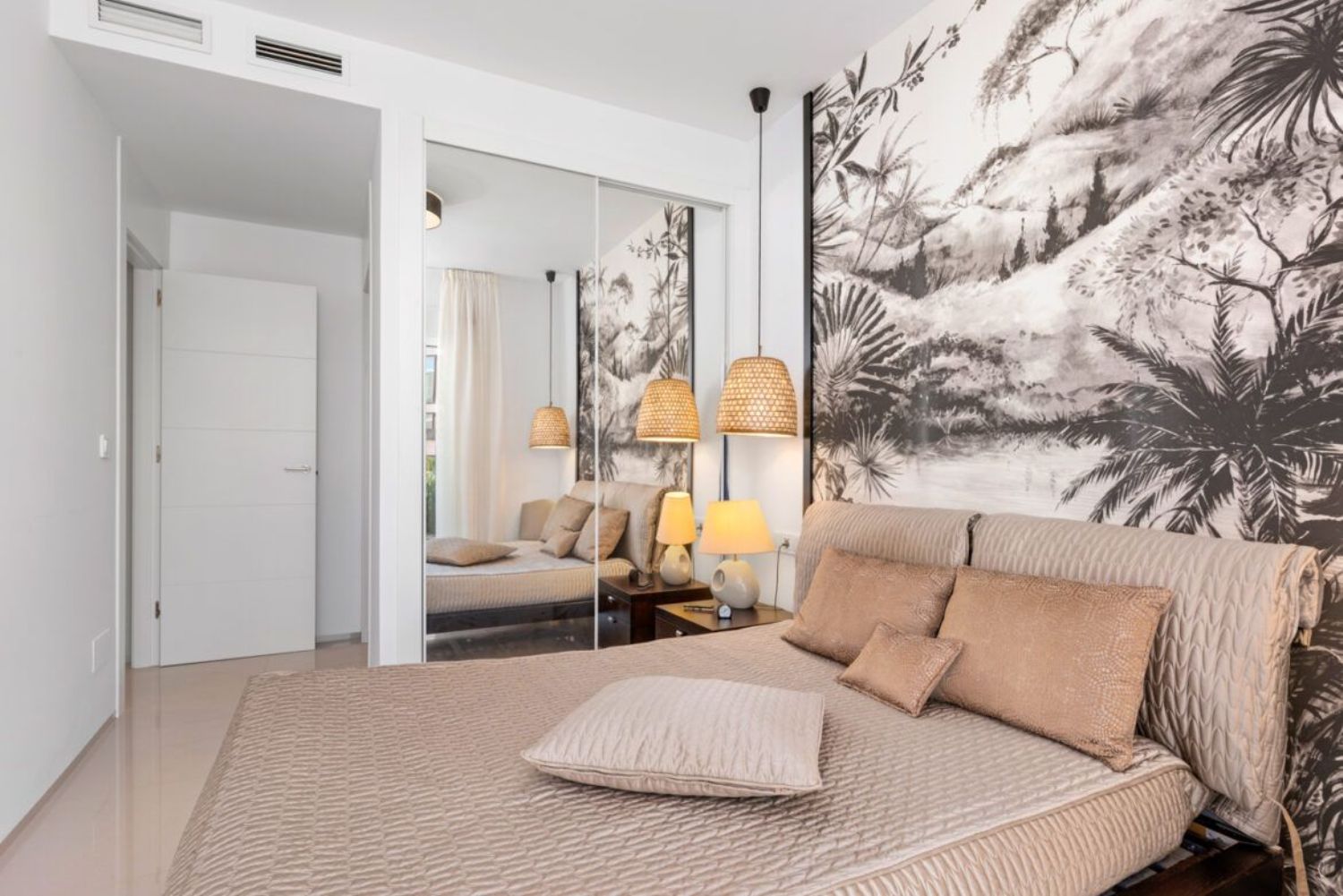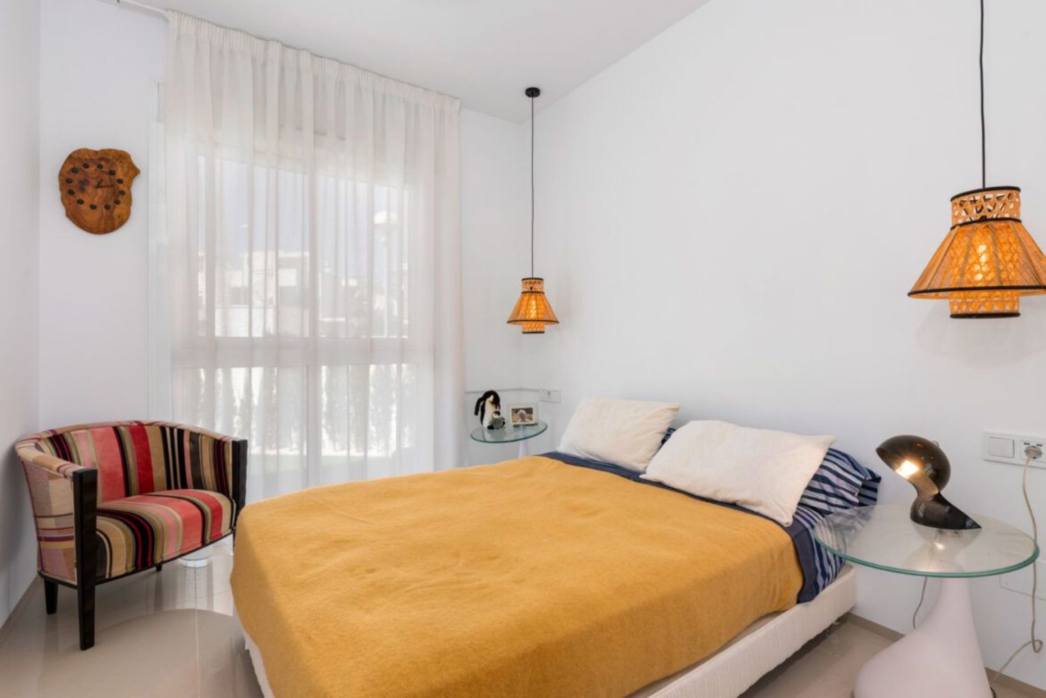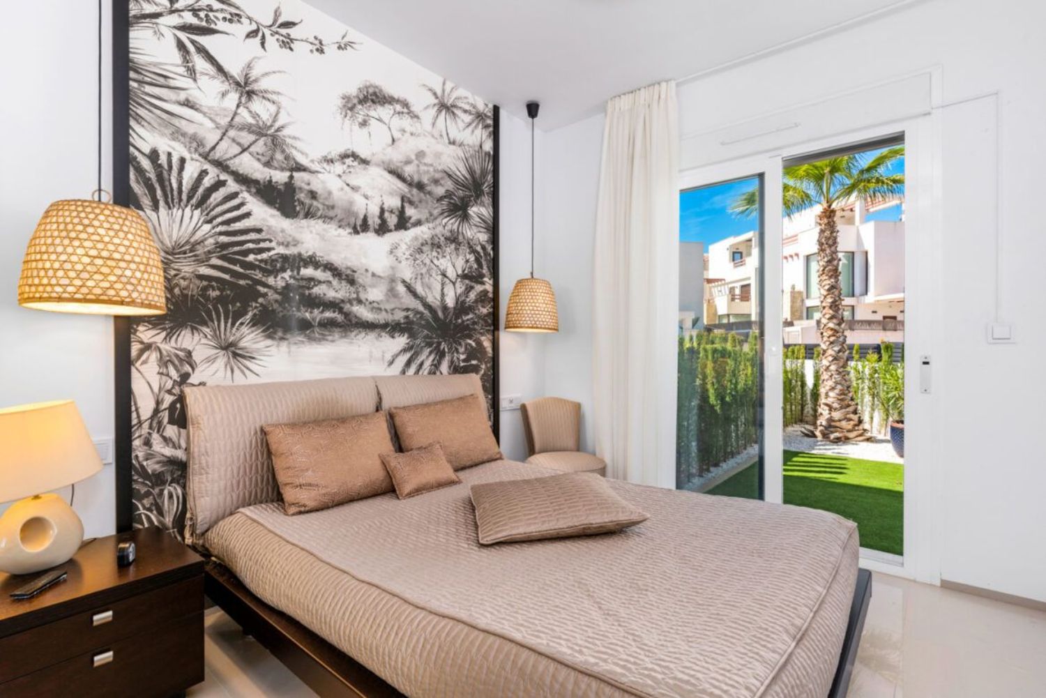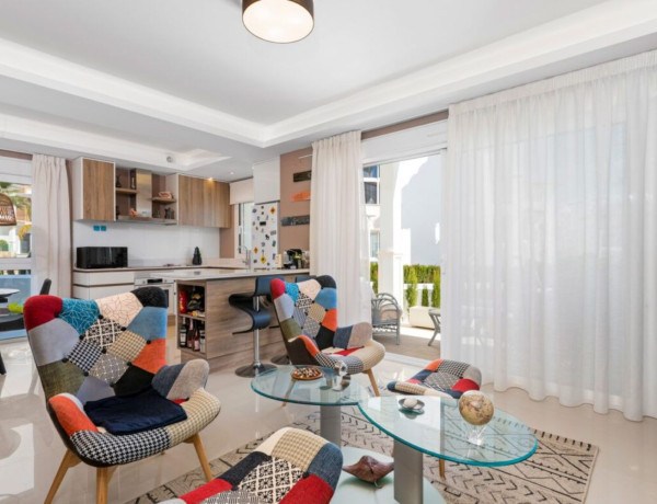 This charming ground-floor apartment features two bedrooms and a private garden, situated in a desirable residential community. With a generous living space of 78m², the apartment includes two well-sized bedrooms equipped with built-in wardrobes and two bathrooms. The master bedroom offers direct access to the rear garden, which is adorned with artificial grass and surrounded by lush greenery.