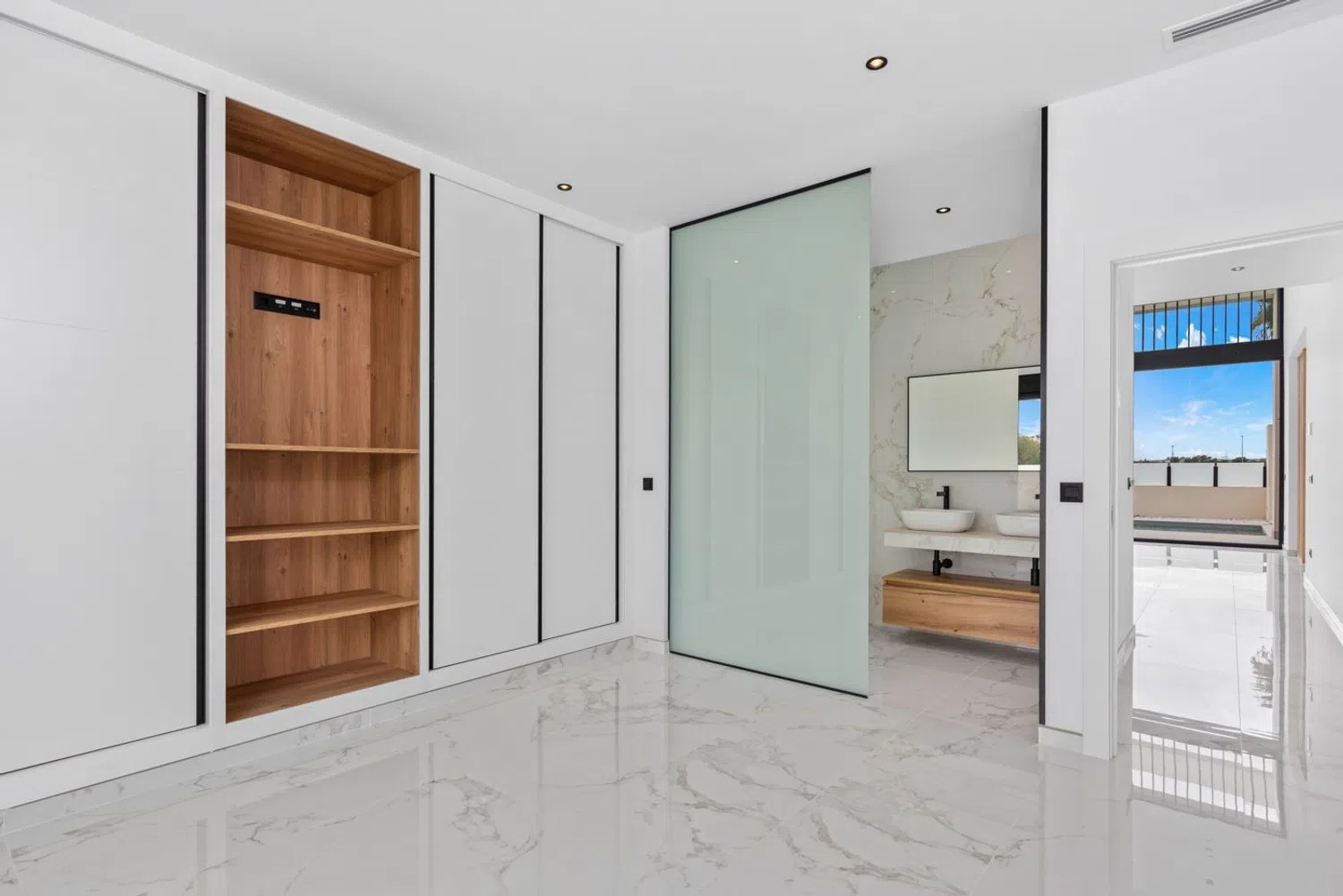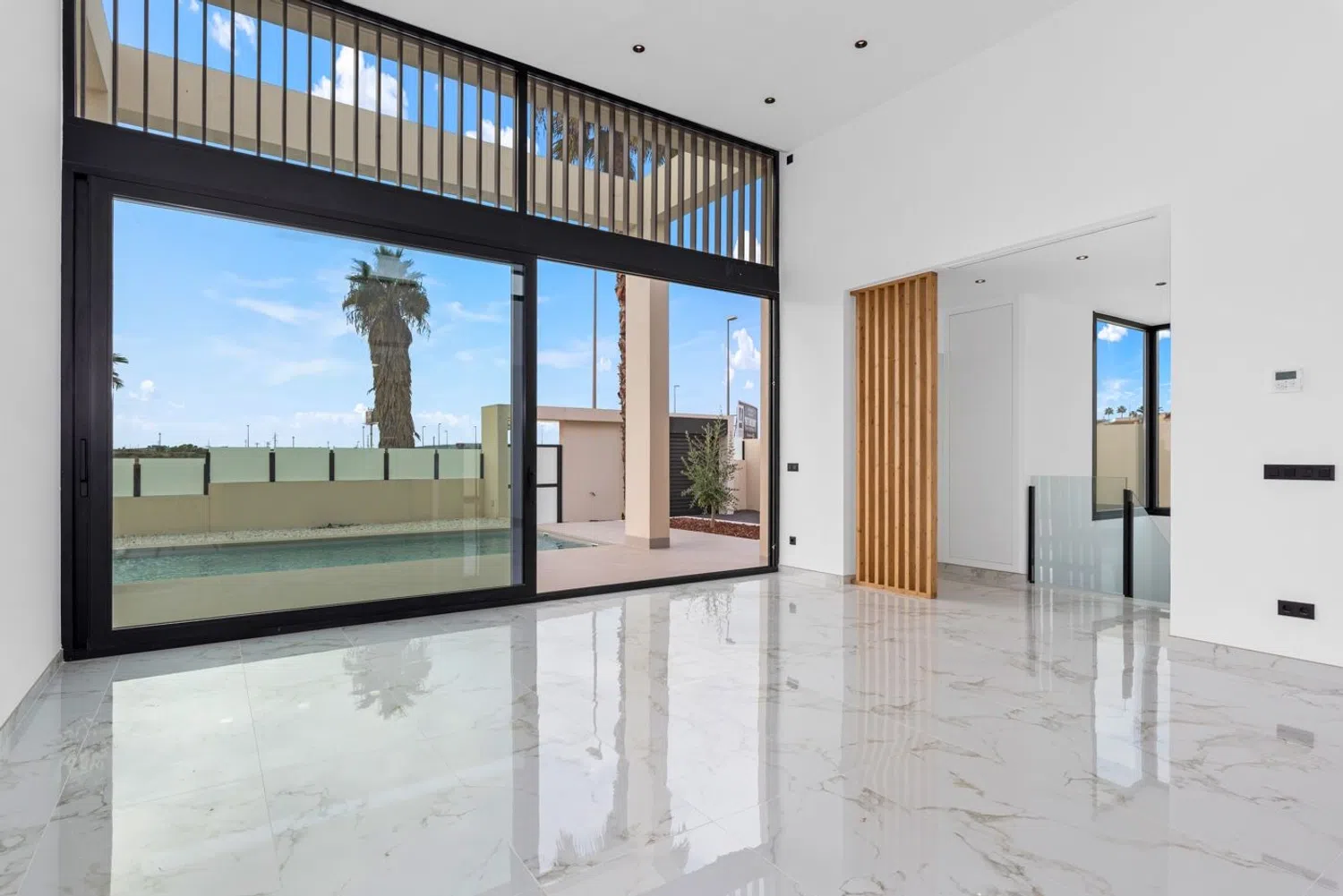 This modern villa, nestled in a serene neighborhood, is designed across two levels and features three spacious bedrooms and three bathrooms. The open layout includes a fully equipped American kitchen that seamlessly connects to the living area, creating an expansive and functional space for relaxation and entertainment.