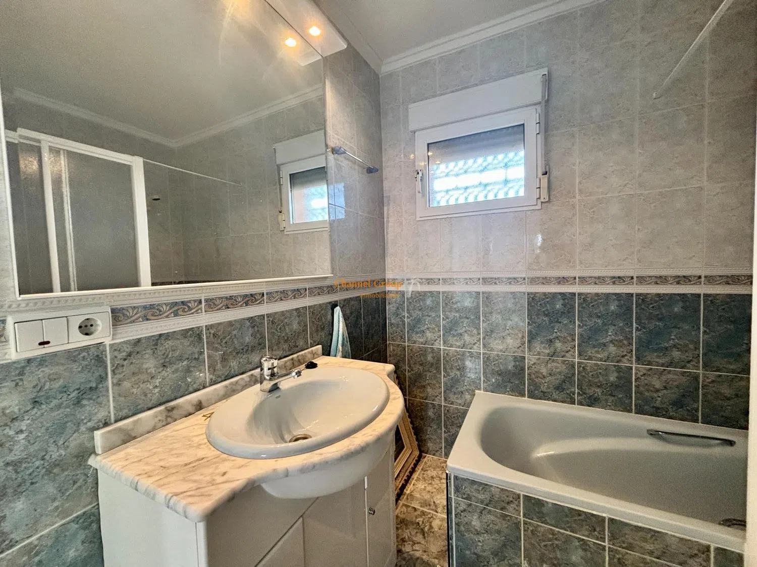 Upon entering the first floor, you’ll be greeted by a bright living and dining area, along with a separate kitchen and a convenient guest restroom. Ascend to the second floor, where you will find two cozy bedrooms, two full bathrooms, and a glazed terrace that serves as a perfect spot to relax, complemented by a balcony that offers picturesque views of the nearby lagoon.