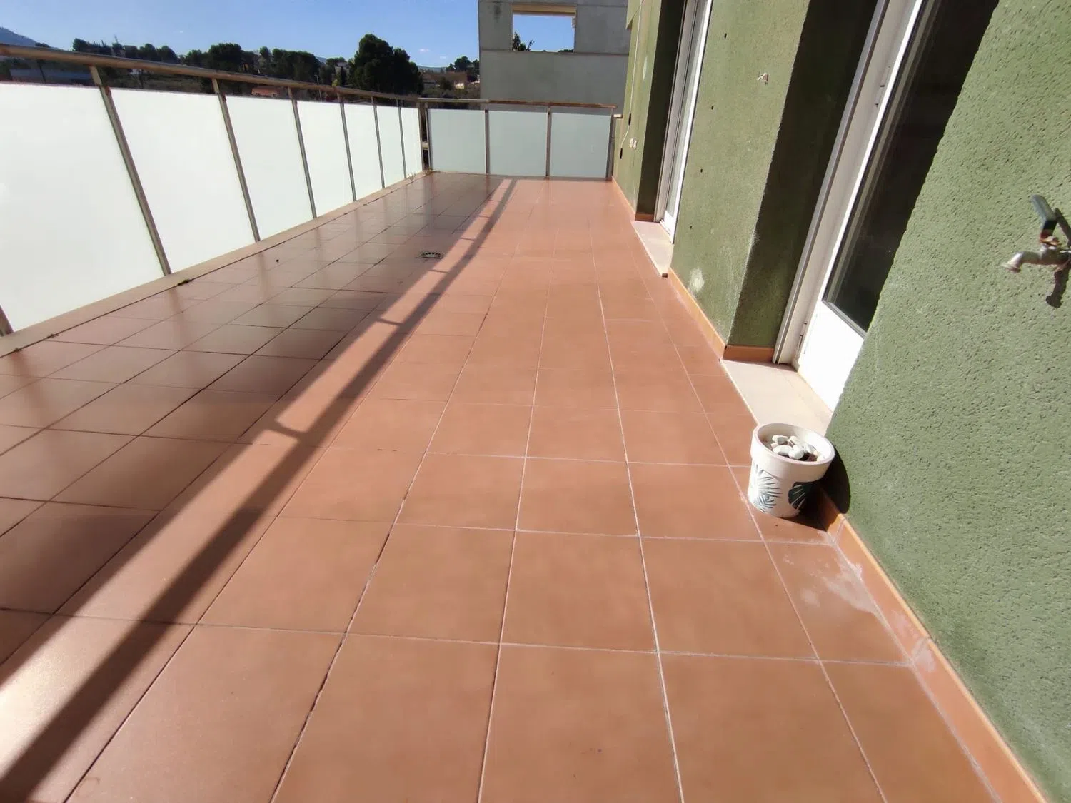 Tiene 3 habitaciones, 1 baño, 1 aseo, cocina, salón, terraza grande (se accede desde la cocina y desde el salón), garaje y trastero. Muy soleado, zona muy tranquila. Tiene 61 M2 útiles, y 29m2 de terraza. Todas las estancias soleadas. Calentador de gas natural. [IW].