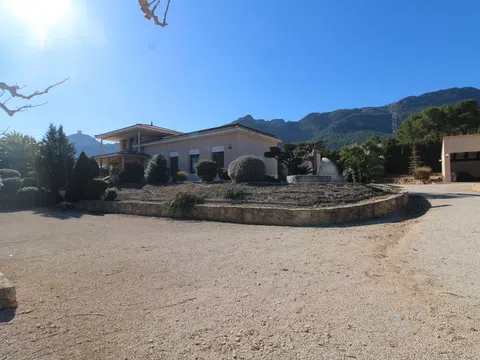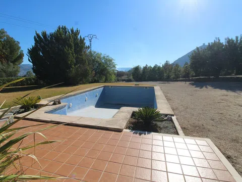 Fantástico chalet sobre una parcela de 5.000 m2 totalmente vallada con puerta de acceso a la propiedad motorizada. La vivienda se distribuye en una planta y cuenta con salón comedor con chimenea, cocina can salida a la zona de barbacoa, tres habitaciones, dos baños completos, buhardilla con terraza. Parcela cuenta con piscina 10x6, garaje cerrado con parking, almacén, barbacoa con patio, pozo legalizado. Fantastic villa on a 5,000 m2 plot fully fenced with motorized access gate to the property. The house is distributed on one floor and has a living room with fireplace, kitchen with access to the barbecue area, three bedrooms, two full bathrooms, attic with terrace. Plot has a 10x6 pool, closed garage with parking, warehouse, barbecue with patio, legalized well. Fantastische Villa auf einem 5.000 m2 großen, komplett eingezäunten Grundstück mit motorisiertem Zugangstor zum Grundstück. Das Haus ist auf einer Etage verteilt und verfügt über ein Wohnzimmer mit Kamin, eine Küche mit Zugang zum Grillplatz, drei Schlafzimmer, zwei komplette Badezimmer und einen Dachboden mit Terrasse. Das Grundstück verfügt über einen 10x6-Pool, eine geschlossene Garage mit Parkplatz, ein Lagerhaus, einen Grill mit Terrasse und einen legalisierten Brunnen. [IW].
