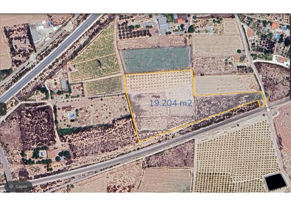 Finca agraria en Partida Derramador. Tiene derecho a riego, en la Comunidad de General de Regantes Riegos de Levante, en el Canal 2P Partidor 005. Tambien puede servir para construir una vivienda unifamiliar de dos plantas de una superficie por planta de 384 m2 cuadrados cada planta, con obras complementarias (bbq, piscina etc) de otros 384 m2.