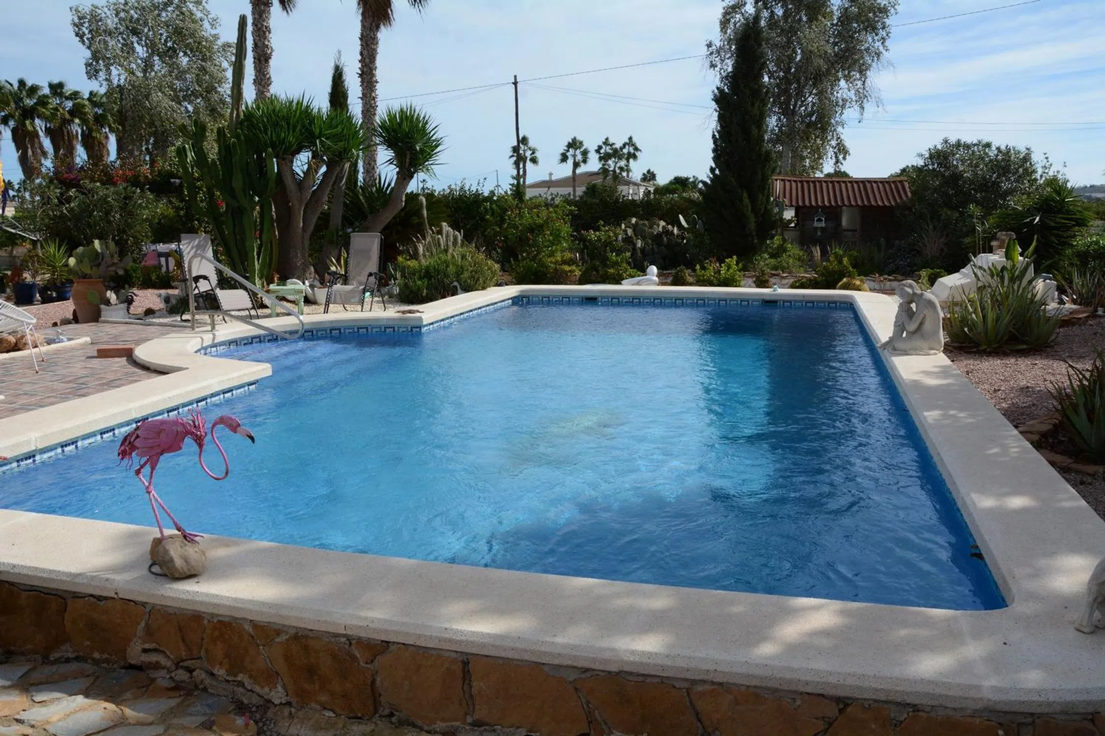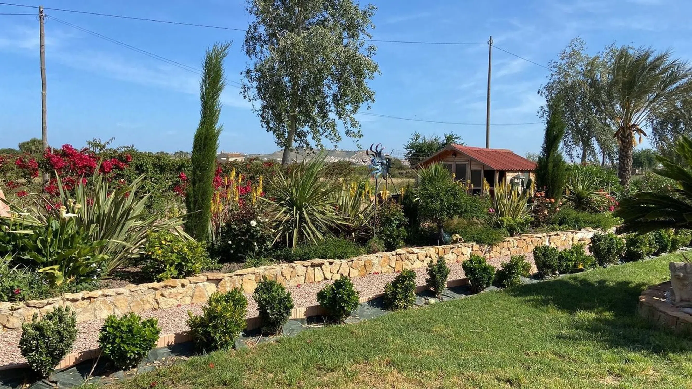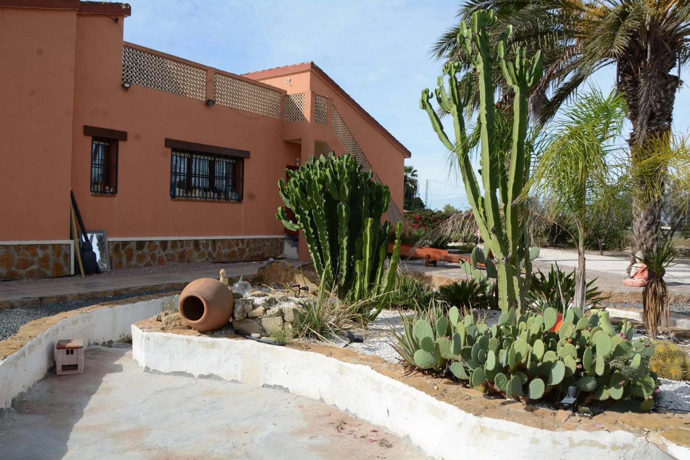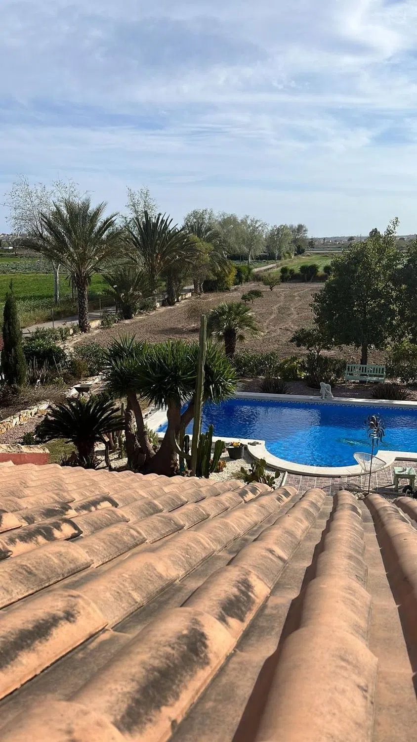 Encantadora Finca Española con Anexo, Piscina y Jardín Mediterráneo – Daya Vieja Situada en el tranquilo entorno rural de Daya Vieja, esta preciosa finca española combina a la perfección el encanto rústico con el confort moderno — a tan solo 8 km de las doradas playas de la Costa Blanca. La propiedad, completamente vallada y con una superficie de 5.903 m², ofrece dos accesos independientes y un ambiente de paz y privacidad. La casa principal, de más de 180 m², conserva todo el carácter auténtico de una finca tradicional, pero está equipada con todas las comodidades actuales. Al entrar, nos recibe un amplio salón-comedor con chimenea que crea una atmósfera acogedora. A un lado se encuentran dos dormitorios con armarios empotrados y un baño familiar. Al otro lado, una cocina luminosa con vistas a la piscina, el dormitorio principal con baño en suite y un segundo dormitorio adicional. Todas las habitaciones cuentan con aire acondicionado frío/calor, garantizando confort durante todo el año. Además, hay una enorme terraza privada en la azotea con amplias vistas al campo desde todos los ángulos de la finca. En la parte trasera de la vivienda se encuentra una agradable naya (terraza cubierta) con vistas al jardín y la piscina, ideal para disfrutar de la tranquilidad del entorno. Junto a la casa se ubica un amplio anexo, con baño, trastero, cocina exterior y un gran garaje que puede transformarse fácilmente en alojamiento adicional o en una casa de invitados. El terreno es un verdadero refugio natural: una parte ha sido diseñada como un precioso jardín mediterráneo, con árboles maduros, plantas aromáticas y un bonito estanque decorativo. La parte posterior aún ofrece muchas posibilidades para seguir ajardinando o crear nuevos espacios. En breve, se añadirá un nuevo estanque ornamental frente a la casa, aportando un toque aún más encantador. La finca dispone de agua potable, electricidad, calificación e internet, por lo que ofrece la oportunidad de vivir en el campo con todas las comodidades modernas. El pintoresco pueblo de Daya Vieja se encuentra a poca distancia a pie, y las playas de Guardamar y La Marina están a solo unos minutos en coche. Ya sea como hogar familiar, refugio de descanso o residencia de estilo mediterráneo, esta finca es una joya única que refleja la auténtica esencia del estilo de vida español.