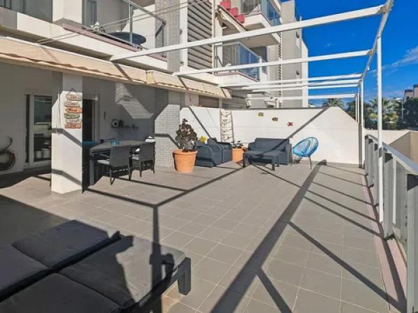 Preciosa planta baja con gran terraza en el km 1 de las marinas junto a todos los servicios. Este magnífico apartamento cuenta con todas las ventajas para disfrutar de Denia y todos sus encantos. Se distribuye en salón comedor con cocina abierta totalmente equipada y salida a una gran terraza de más de 30m2 además de un jardín privado con salida a la calle directamente con sol de mañana. Además cuenta con 3 amplios dormitorios y 2 baños ( uno de ellos en suite ). Aire acondicionado por conductos ( frio/calor ), plaza de parking subterráneo y trastero. La Urbanización cuenta con piscina, zonas verdes y zona de juegos infantiles. Está enclavada en el lugar perfecto ya que se encuentra a escasos 50 mts del mar y a 1 km del centro de Denia y todos los servicios. Ideal tanto para vacaciones como para largas estancias.