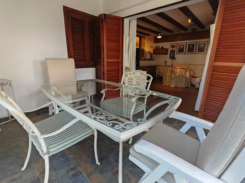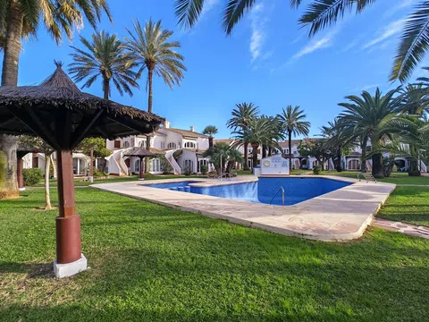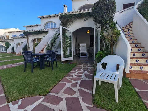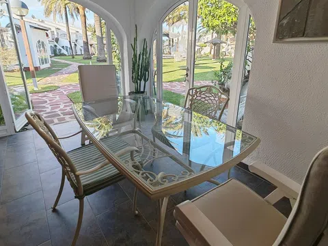 Precioso adosado en una de las mejores Urbanización de Denia ( Cabañas III ) situada en el Km 7 de las Marinas en primera línea de playa del El Molins. La vivienda se sitúa en planta baja y cuenta con salón comedor con cocina abierta y salida a una terraza cubierta desde donde se accede al jardín y las zonas comunes, tres dormitorios y dos baños completamente reformados. También cuenta con un espacio que sirve de lavandería y trastero además de una plaza de parking junto a la vivienda incluída en el precio. Se vende totalmente amueblado tal y como se ve. La Urbanización está muy cuidada, tiene amplias zonas verdes, dos piscinas conserje y salida directa a una de las mejores playas de Denia por su tranquilidad.