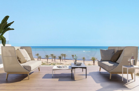 is a unique residential complex located in the municipality of Denia, specifically on Les Marines/Las Marinas at Calle Boga. Nestled right on the beachfront and just a short distance from the heart of Denia, this location offers a vibrant cultural, gastronomic, and entertainment scene. The residences range from luxurious two to three-bedroom homes, including ground-floor apartments with private gardens and pools, as well as penthouses with their own private pools.