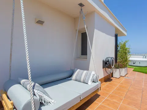 Este ático está en la exclusiva urbanización El Manantial. De la superficie del piso de 144 M2, la terraza ocupa 66 M2 aproximadamente. Todo en una misma planta apartamento y terraza. Se vende amueblado. Tiene aire acondicionado y calefacción por bomba o máquina de frío AA y calor. Tiene histórico demostrable y licencia de alquiler turístico.