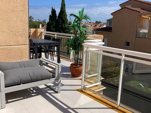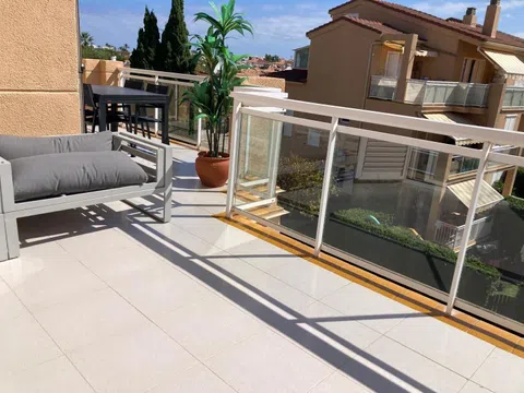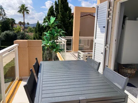 Este exquisito ático de tres dormitorios tiene una superficie de 80 m² utiles y cuenta con interiores amplios y luminosos, además de amplias terrazas con untotal de más de 25 m2. El salón/comedor cuenta con aire acondicionado y calefacción por aire forzado. Hay acceso directo a la terraza desde el salón. Los 3 dormitorios son de matrimonio disponen de aire acondicionado y calefacción por aire forzado. La primera habitación doble tiene armarios empotrados y ofrece mucho espacio. El segundo dormitorio, muy amplio también esta con acceso directo a la terraza. El dormitorio 3 del último piso esta accesible a través de una escalera, esta habitación es de matrimonio también. Cocina: La cocina abierta está totalmente equipada con electrodomésticos modernos, como lavavajillas, 3 placas de vitrocerámica. También hay acceso directo a la terraza desde la cocina. Baños: Una ducha/WC. Amplia terraza orientada al oeste Pequeña terraza orientada al este. Maravillosas vistas de las montañas, el valle y el campo. Características adicionales: Una plaza de aparcamiento cubiertas al aire libre. Ubicación: El ático está situado en la residencia "ClemenVilla I", conocida por su belleza y confort. Se encuentra a 3 km del centro de Dénia en una zona tranquila y soleada, a sólo 650 m del mar y de la playa de arena "Playa de Les Marines". Comodidades: Uso compartido de una gran piscina angular (25 x 12 m, profundidad 80 - 210 cm), disponible todo el año Piscina infantil y ducha exterior. Tienda de alimentación cercana (700 m), supermercado (2 km), restaurante (450 m), bar y cafetería (500 m) Puerto deportivo (4 km), escuela de surf (1 km), pistas de tenis (2 km) Accesibilidad: El ático está en el segundo piso sin ascensor. Esta propiedad ofrece la combinación perfecta de comodidad, conveniencia y vistas impresionantes, lo que la convierte en una opción ideal para una estadía serena y placentera. [IW].