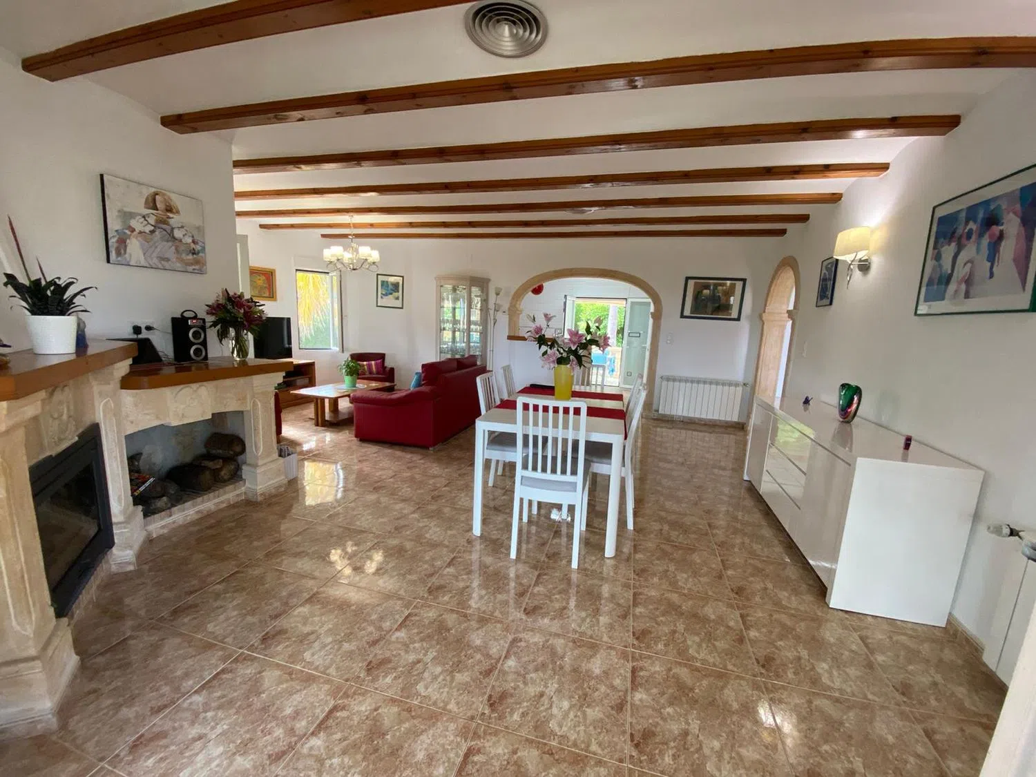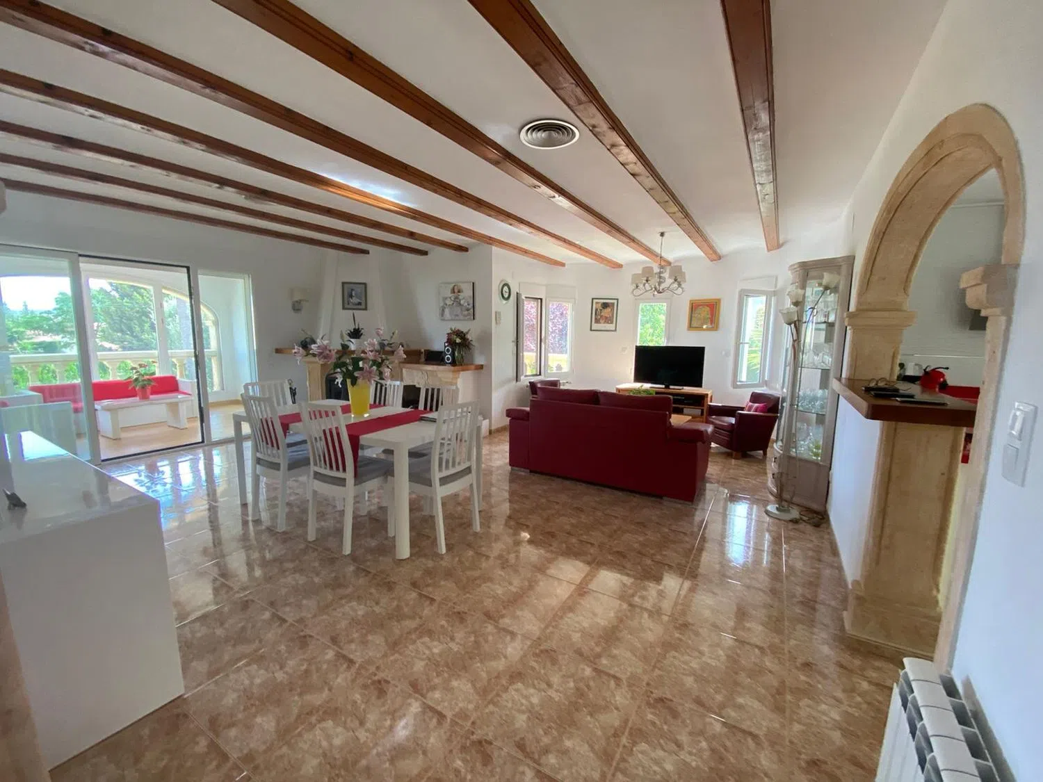 Presenting a brand new chalet available for sale, perfectly located near the vibrant coastal town. Originally constructed in 1996 and tastefully renovated in 2015, this two-story residence exudes elegance and comfort. The main living area spans 145 square meters, featuring a spacious living-dining room adorned with a cozy fireplace, alongside an open kitchen that invites warmth and togetherness. There are also two covered terraces and a glass-enclosed terrace, ideal for additional dining space that bathes in natural light.