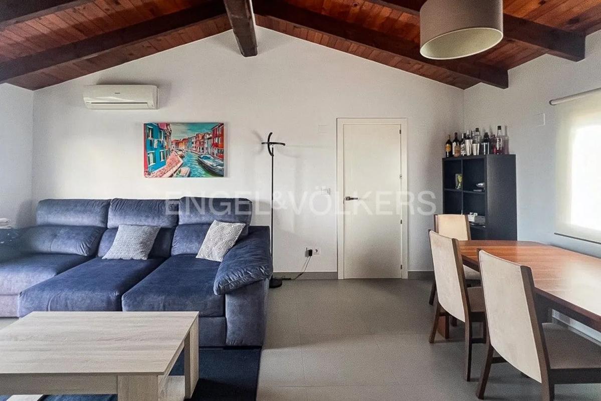 Discover a charming townhouse featuring breathtaking views of both the sea and mountains. This beautifully renovated property offers a built area of 103 square meters set on a 300-square-meter plot, located just 3 kilometers from the town center. The single-story home comprises a welcoming living room, a kitchen, one bedroom, and a bathroom, with the potential for an easy addition of a second bedroom.