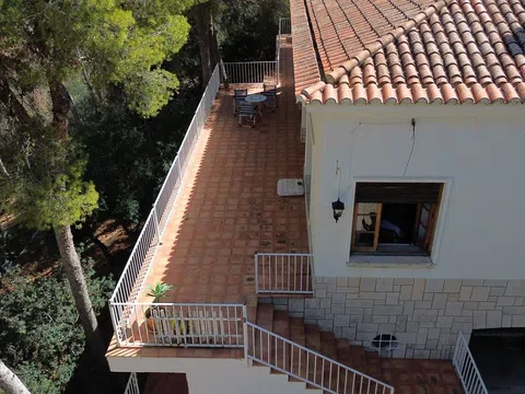 Tradicional villa ubicada en zona privilegiada de las Rotas con vistas el mar y a pocos minutos a pie de la playa, esta villa tiene una inmensa parcela de 7.833m2 en la que tiene gran jardín con arboles frutales , pista de tenis y piscina ademas de un pequeño viñero. La parcela tiene varias posibilidades, una de ellas es poder construir un Hotel y la otra es una agrupación de viviendas unifamiliares a razón de una vivienda a cada 500m2 de parcela La parcela esta completamente vallada, tiene una gran privacidad por los pinos y su vegetación. La villa tiene muchas posibilidades de poder hacer una magnifica reforma manteniendo el estilo tradicional mediterráneo o poder construir una villa de obra nueva impresionante. Actualmente la villa tiene 6 habitaciones espaciosas con dos de ellas en las torres de la villa, una cocina espaciosa, un salon comedor que conectan entre ellos, tres cuartos de baño y uno de ellos doble, una terraza muy grande con una mesa exterior para comer disfrutando de las buenas vistas a el mar como a toda la parcela también tiene una barbacoa exterior para pasar noches fantásticas con amigos o familiares. La villa tiene a pocos minutos las mejores playas y calas de Denia como también cerca de muchas rutas de montaña y excursiones impresionantes, tiene cerca muchos buenos restaurantes de alto nivel y puedes acceder paseando por el paseo de las Rotas a Denia.