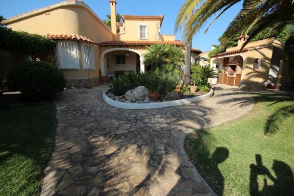 Encantador chalet independiente situado en una tranquila zona de Las Marinas, a tan solo 370 metros de la playa. La propiedad cuenta con una parcela privada de 600 m², rodeada de un amplio jardín y equipada con parking con sombra, cocina de verano con barbacoa, zona chill out con jacuzzi y sauna exterior, creando un espacio perfecto para disfrutar al aire libre durante todo el año. La vivienda ofrece 120 m² construidos, distribuidos en dos plantas: En la planta principal, se encuentra un luminoso salón-comedor con chimenea y aire acondicionado split (frío/calor), una cocina independiente totalmente equipada, dos amplios dormitorios con armarios empotrados y un baño completo. En la planta superior, se ubica el tercer dormitorio, un baño completo y una gran terraza abierta con vistas a la montaña, ideal para relajarse y disfrutar del entorno. Ubicado en un entorno tranquilo y con poco tráfico, a pocos minutos a pie de la playa, y con supermercados y restaurantes a menos de 10 minutos, este chalet combina comodidad, privacidad y ubicación excepcional. ¡No deje pasar esta oportunidad de vivir cerca del mar en una de las zonas más agradables de Dénia!