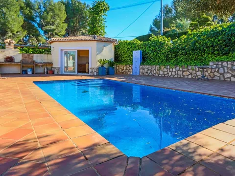 RANDOF Real Estate con oficinas ubicadas en Dénia, Jávea y Moraira le ofrece este chalet exclusivo situado en una de las mejores zonas de Dénia, a un paso de la Marineta Casiana y de Las Rotas, en una ubicación tranquila, privada y residencial que ofrece calidad de vida y comodidad. La propiedad, con bonitas vistas al mar, se encuentra en una amplia parcela de 780 m² que incluye una piscina, una zona de barbacoa perfecta para reuniones, una cocina exterior acristalada ideal para disfrutar de comidas al aire libre con familia y amigos, un baño exterior, un jardín privado con sistema de riego automático y una zona de aparcamiento cubierta con capacidad para varios vehículos. El chalet, distribuido en dos plantas, destaca por su diseño funcional y luminoso. En la planta principal encontramos un gran salón-comedor con ventanales que permiten disfrutar de las vistas al mar, una chimenea que aporta calidez y salida directa a una terraza, baño, una cocina independiente, completamente equipada, con acceso a la parcela y una práctica zona de lavandería; y un espacio adicional junto al salón que puede acondicionarse como oficina, sala de juegos o un dormitorio más. En la planta superior se ubican tres amplias habitaciones, todas con baño privado en suite, armarios empotrados y acceso a terrazas, siendo la habitación principal especialmente atractiva por sus vistas al mar. Además, la vivienda cuenta con una zona independiente por reformar, perfecta para convertir en un apartamento de invitados con baño privado y salida directa al exterior. El chalet dispone de características adicionales como ventanas dobles aislantes del ruido y la temperatura, mosquiteras, aire acondicionado frío/calor, chimenea, una excelente orientación solar y abundante luz natural. Este chalet es único por su ubicación ideal para vivir cómodamente durante todo el año disfrutando del entorno y el clima mediterráneo. [IW].