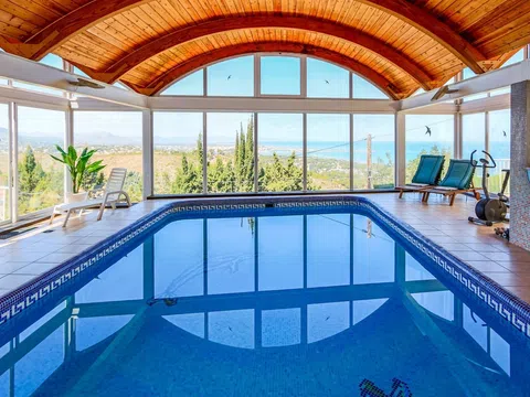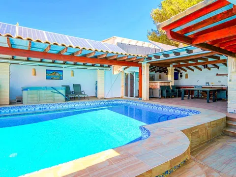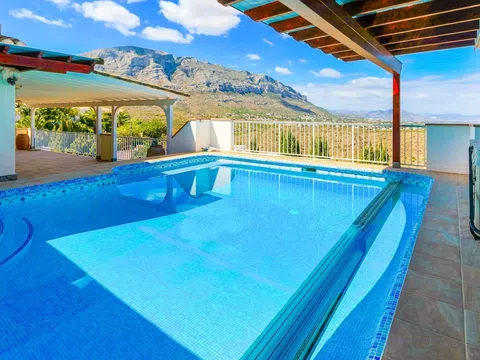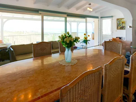 RANDOF Inmobiliaria, con oficinas en Dénia, Jávea y Moraira, le ofrece esta encantadora propiedad con fantásticas vistas panorámicas al mar en una ubicación muy solicitada en Las Rotas, Dénia. Ubicado en dos parcelas con un total de 1.445 m2, este excepcional conjunto consta de piscina exterior con terraza y cocina de verano, casa principal con estudio independiente, piscina, casa de invitados, oficina, garaje, sauna con ducha y lavadero, todo ello enclavado en un jardín mediterráneo. La casa principal ofrece en una sola planta una zona de entrada independiente, una cocina americana totalmente equipada, salón con ventanal, comedor con acceso a la piscina exterior y terrazas, tres dormitorios y dos baños. Una escalera exterior conduce al estudio con sala de estar/dormitorio, cocina americana, cuarto de ducha y terraza. La casa de invitados consta de un salón/comedor con cocina americana y acceso a una terraza parcialmente cubierta con vistas al mar y al invernadero, que conecta la villa con la piscina cubierta, dos dormitorios, un cuarto de baño con bañera, un cuarto de baño con ducha y un aseo de invitados. Las sofisticadas características incluyen calefacción central de gas, aire acondicionado, videovigilancia en la zona exterior, cocina de verano con grifo, paneles solares, bomba de calor y deshumidificador en la piscina, etc. Una propiedad ideal para disfrutar de la vida mediterránea todo el año con familia y amigos. [IW].