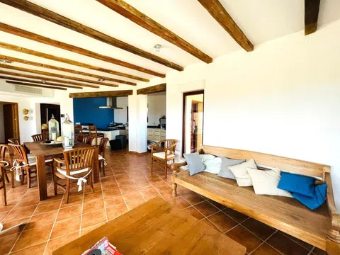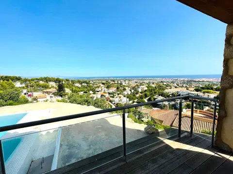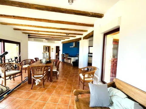 DENIA, chalet exclusivo en el parque natural del Montgó, muy privado, con vistas inmejorables al mar y a las montañas. Con piscina de sal, con cascada y spa, con un fantástico porche y terrazas rodeando toda la vivienda. La planta principal dispone de 3 habitaciones y 2 baños, cocina abierta totalmente equipada, amplio salón comedor. Suelo radiante. Se puede acceder desde esa planta a estupendo apartamento privado con cocina, salón, dormitorio y baño. Cuarto de lavandería y sótano. También dispone de cocina exterior. Parcela algo inclinada [IW].