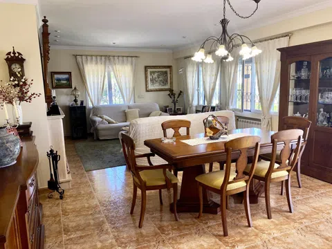 Chalet ubicado en una excelente zona residencial, soleado y bien comunicado con el centro urbano, perfecto para residir durante todo el año debido a su tranquilidad. Además, ofrece vistas al mar, al castillo y al Montgó. El chalet construido en 1998 con materiales de alta calidad, se encuentra en una parcela llana, completamente cerrada y orientada hacia el noreste. La vivienda principal consta de 250 m2 distribuidos en 2 plantas de la siguiente manera: En la planta baja, la propiedad cuenta con una terraza cubierta con vista al mar, un amplio salón-comedor con chimenea, una cocina con salida al jardín, 1 dormitorio y 1 baño. En la planta alta, se encuentra el dormitorio principal con una terraza cubierta desde la cual se pueden apreciar magníficas puestas de sol, vistas al mar y al castillo. Hay 2 dormitorios dobles y un amplio baño con dos accesos para atender a todos los dormitorios. Además de la vivienda principal, la propiedad incluye un sótano conectado por una escalera interior, que consta de un amplio salón, cocina, lavadero/zona de planchado, oficina, 1 dormitorio y 1 baño. En el exterior, cuenta con un hermoso y bien cuidado jardín con espacio suficiente para construir una piscina, un garaje doble y zona de estacionamiento. Ubicación Son 1,5 km al centro de Denia, 2 km al club náutico y 1,5 km al mar. El campo de golf de 27 hoyos La Sella está a 7 km. Más detalles Calefacción central mediante radiadores (gasoil), A/C (frío/calor), doble acristalamiento, chimenea, trastero.