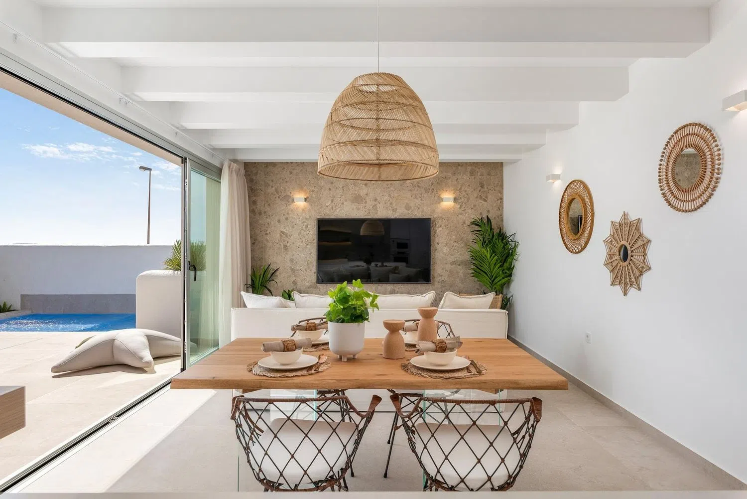 Discover exquisite new villas designed in the charming Ibizan style, set on independent plots in a serene locale. These stunning residences feature an open-plan kitchen and living area, three spacious bedrooms, and two well-appointed bathrooms. Built-in wardrobes enhance convenience, while private solariums offer breathtaking views, perfect for relaxation. The properties also come with lush gardens, dedicated parking spaces, and inviting private pools.