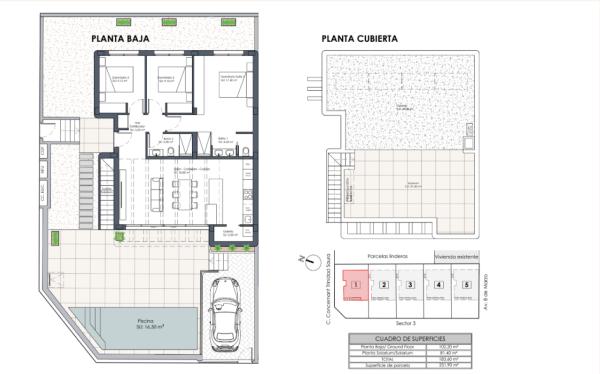 Discover the luxuriously independent villa with a private pool, located in the picturesque area of Alicante, Dolores. This elegant property is just a short stroll away from a lively Spanish village offering a wide array of amenities. These sophisticated residences stand out with their single-floor design, featuring private pools, electric shutters, modern kitchens complete with appliances, LED lighting, a video intercom system, rooftop solariums, and air conditioning for both cooling and heating. The villas are priced between 429,900 € and 489,900 €, offering three bedrooms and varying sizes from 109 m² to 123 m².