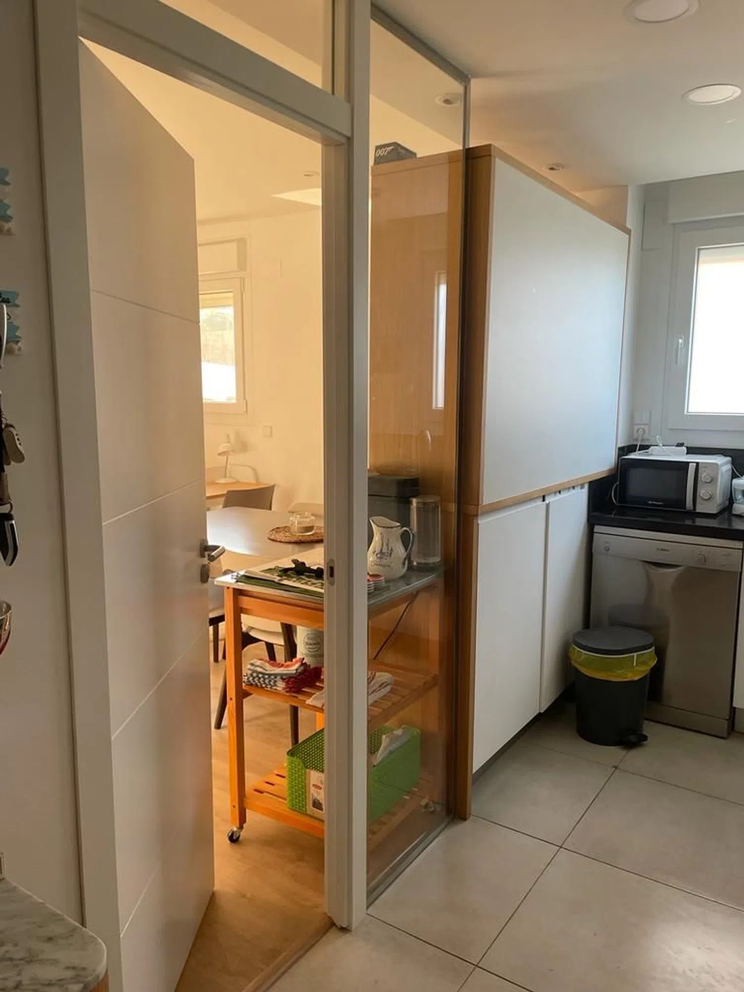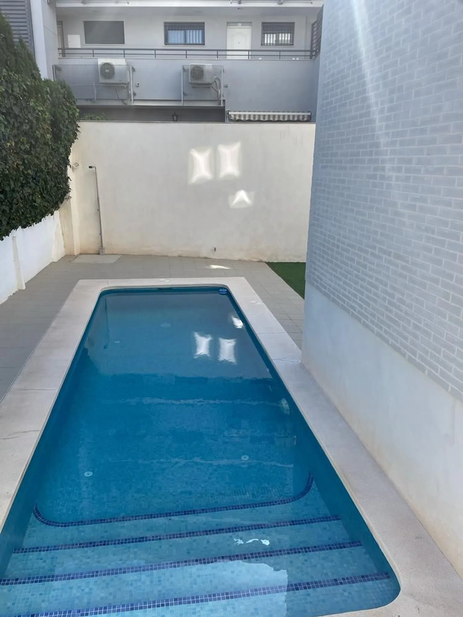 The home boasts elegant laminate flooring throughout and is equipped with central heating, ensuring comfort year-round. The price of the apartment includes a designated parking space and a storage room within a small, tranquil private community of only seven residents. The complex also offers a beautiful swimming pool and green spaces for relaxation.