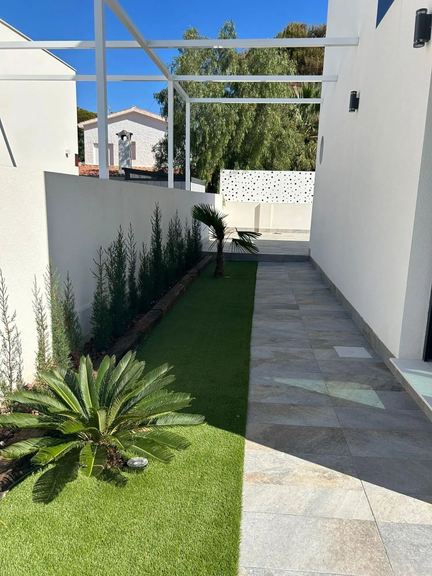 Situated just 400 meters from the beautiful Muchavista beach, this stunning villa spans 257 m² and is set on a private plot of 470 m², making it an ideal sanctuary to relish the Mediterranean climate in a serene and comfortable environment. The surrounding area boasts low residential density, free from crowds while still offering all necessary amenities within close reach.
