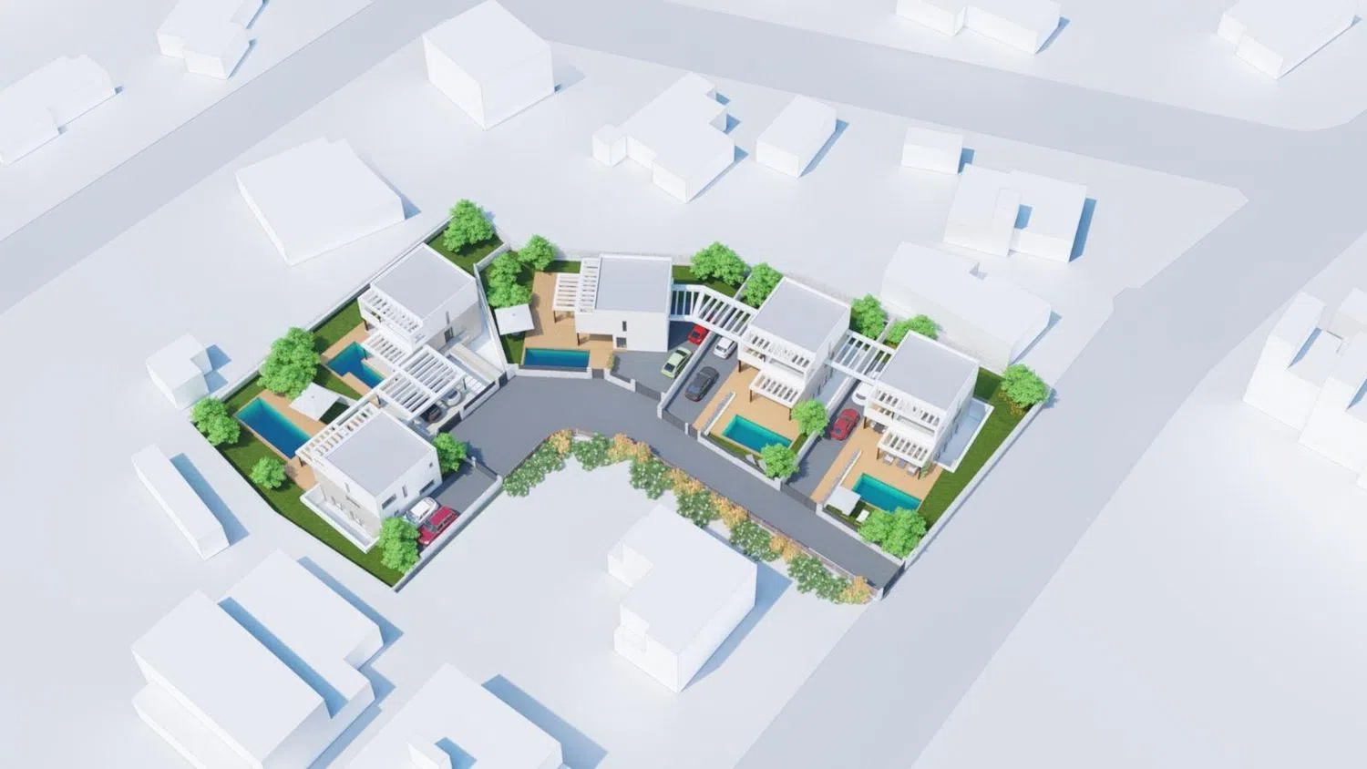 Each villa is set on generously sized plots of approximately 500 square meters, offering about 280 square meters of constructed space, complete with a private swimming pool. Prospective owners will have the creative freedom to tailor the layout to their individual preferences, with options for up to four bedrooms and four bathrooms. The design includes a lovely English patio on the semi-basement level and spacious terraces ideal for year-round gatherings with family and friends.