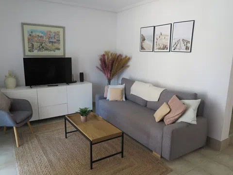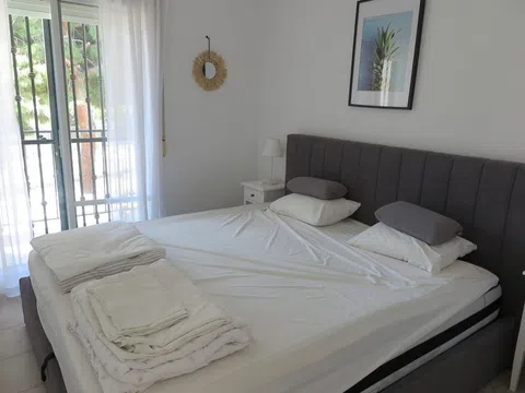 Preciosa casa adosada muy bien ubicada junto a la playa de arena de Cala Merced, y con vistas al mar. Tiene dos dormitorios dobles, y uno con balcón con vistas al mar, un baño moderno arriba y un aseo abajo, cocina americana, dos trasteros y una sala de estar de buen tamaño que da al patio privado y soleado en la parte delantera. La exclusiva comunidad de Calanuza goza de una atractiva zona de piscina, y tiene acceso privado directo a la parada del TRAM de Venta Lanuza. Hay una zona de parking seguro para vehículos dentro de la urbanización, y la playa de arena está a solo cien metros de distancia, y un nuevo supermercado a solo dos cientos metros. Esta es una propiedad perfecta para uso vacacional y/o residencial para todo el año en una zona muy tranquila al lado de la playa. La propiedad se vende con los muebles incluidos. [IW].