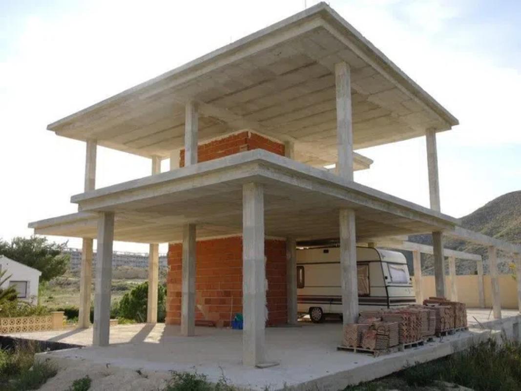 Esqueleto de un chalet grande con vistas impresionantes al mar en una parcela de unos 900m2. Por debajo tiene un garaje/trastero enorme ya construído. [IW].
