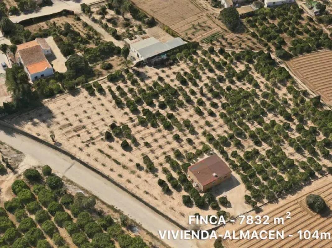Finca rustica con vivienda-almacén de 104m2 (12mx9m). Acceso directo a canal de riego.