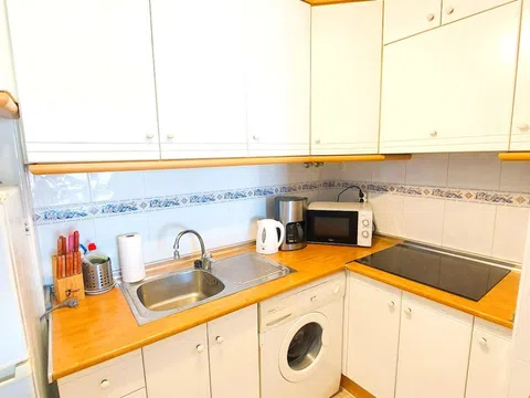 Acogedor piso en venta Arenales del Sol. Con 1 dormitorio espacioso, 1 baño grande, salón amplio y una terraza de 10 m2 para disfrutar de las VISTAS AL MAR. En perfecto estado de segunda mano, acaban de hacer varias mejorías, pequeñas reformas, pintar. Aire acondicionado con bomba de calor y nuevo vitroceramica. Con la posibilidad de adquirirlo amueblado. La urbanización cuenta con piscina y jardines comunitarios, así como con campo de fútbol enfrente de la urba, varios parques para niños y zonas de restaurantes cercanas en la playa. El edificio tiene una azota pisable con muy buenas vistas, que se puede disfrutar perfectamente. Además, está situado frente al mar, el aeropuerto a 9 km (9 minutos en coche) y con acceso rápido a los pueblos cercanos, Elche y Alicante. Una oportunidad única para disfrutar de la tranquilidad y belleza de la costa mediterránea. Actualmente dispone LICENCIA TURISTICA y pleno funcionamiento con buena rentabilidad. Comunidad: 50 € / mes IBI: 177 € / anual Gastos de basura: 40 € / año ¡No dejes pasar esta oportunidad y llamanos ya:.