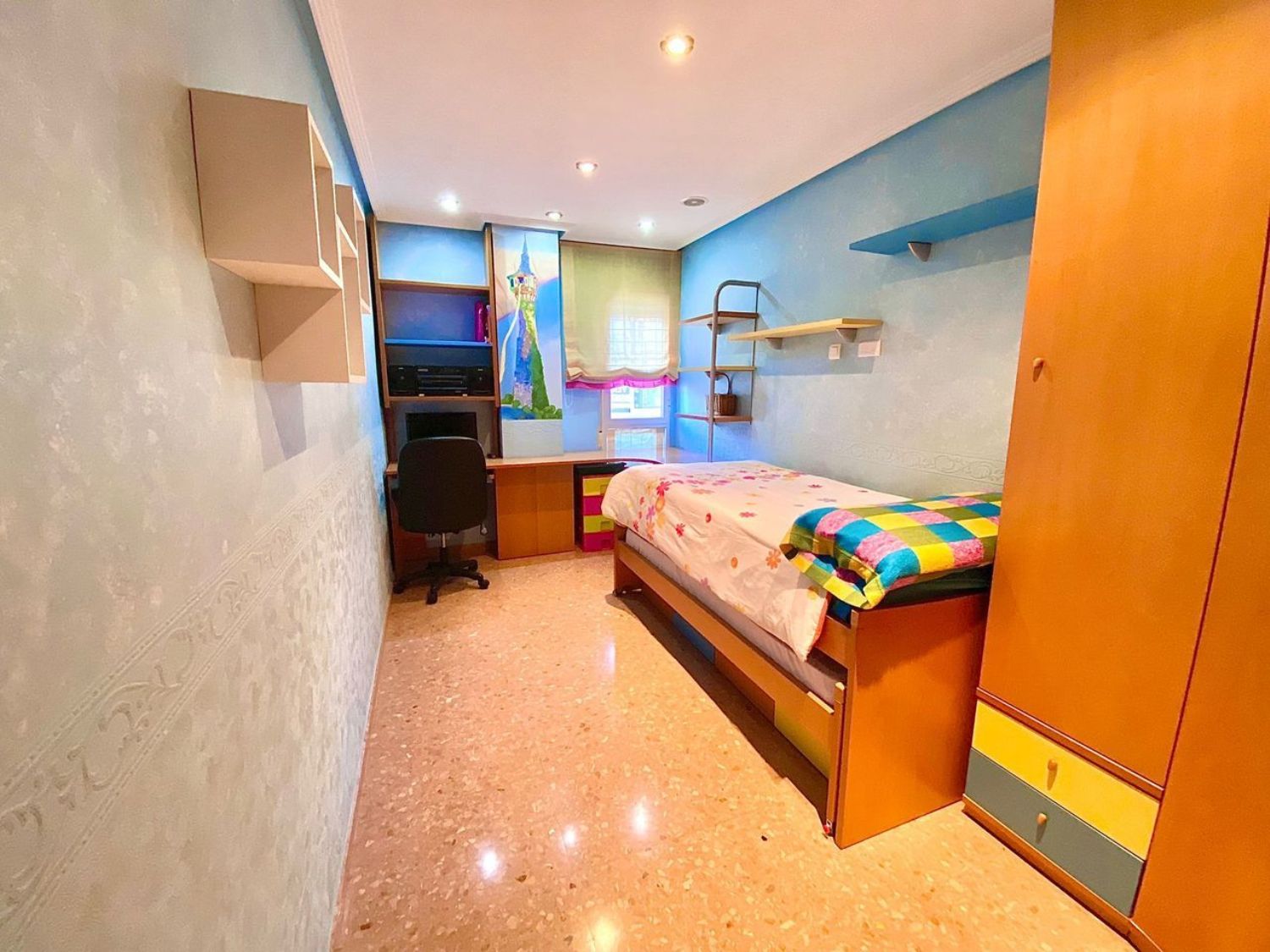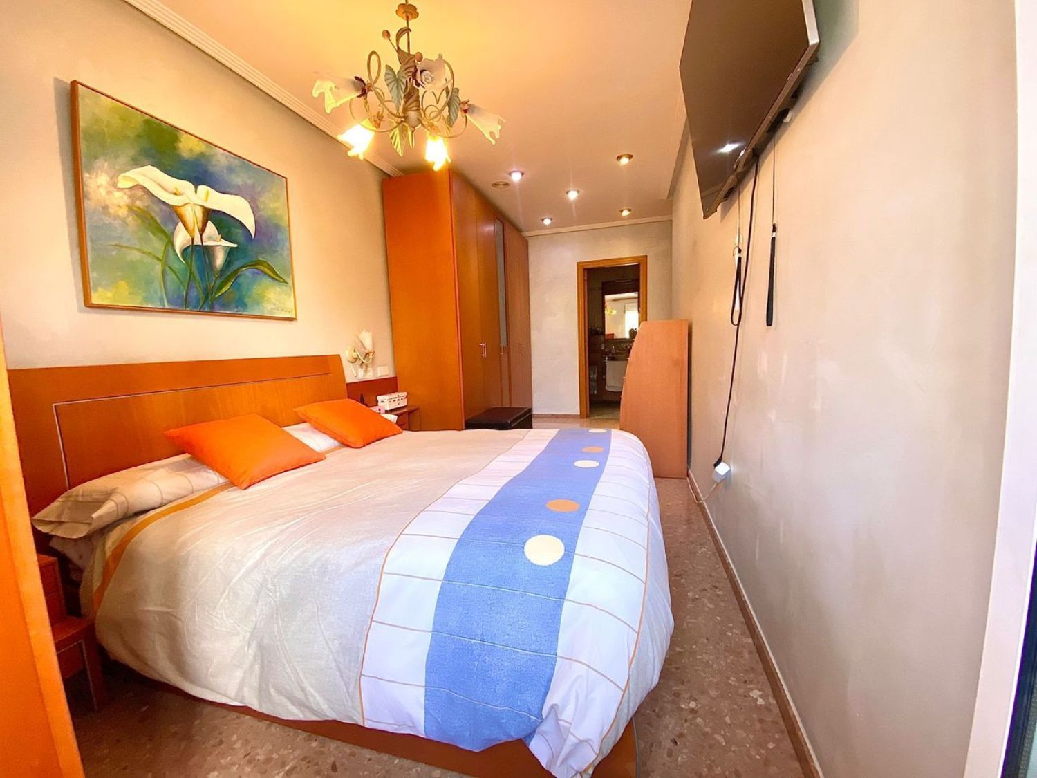 Located on the first floor, the apartment features an elevator and convenient parking access directly from it. The generously sized master bedroom includes an en-suite bathroom, providing both comfort and privacy.