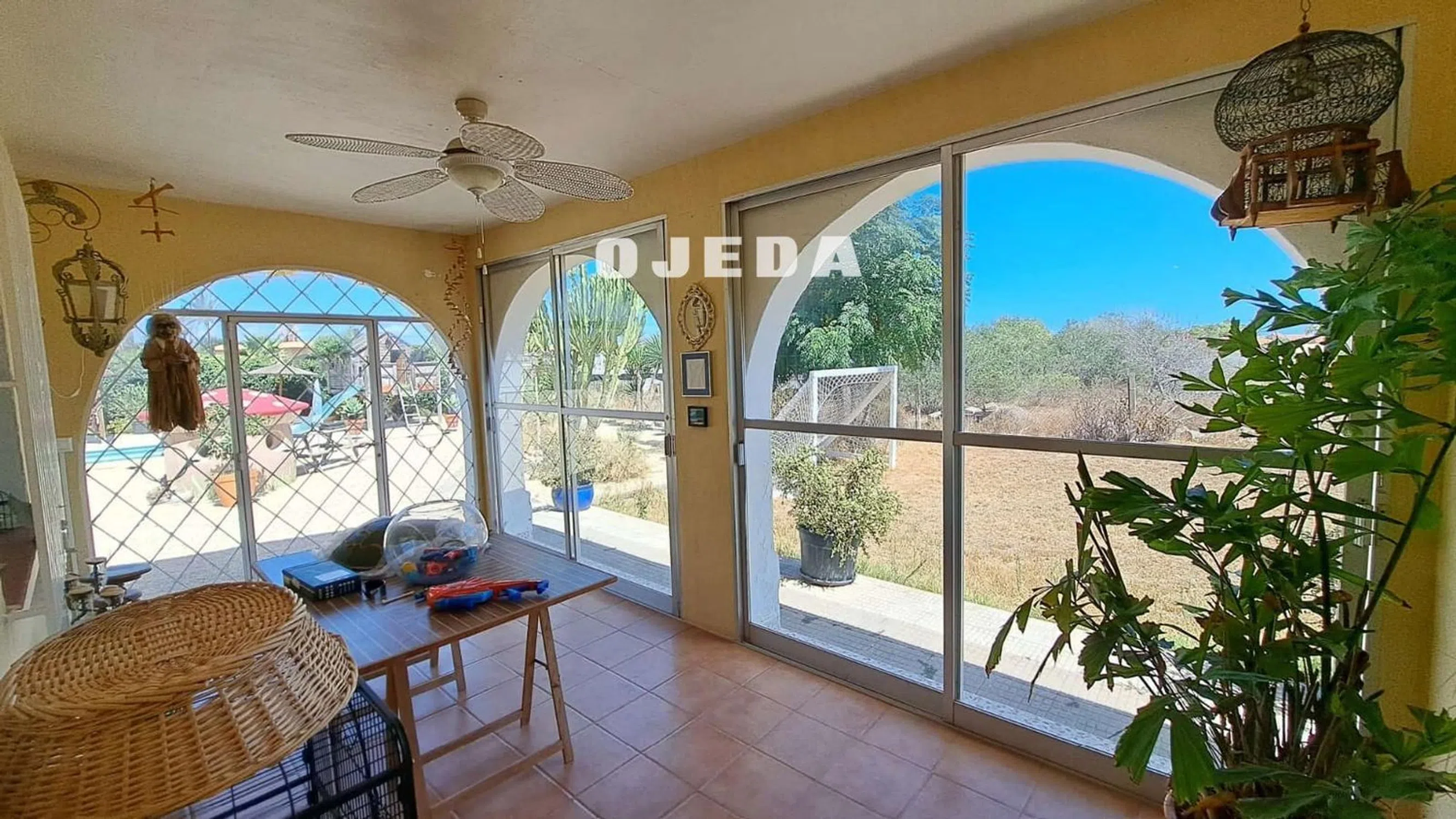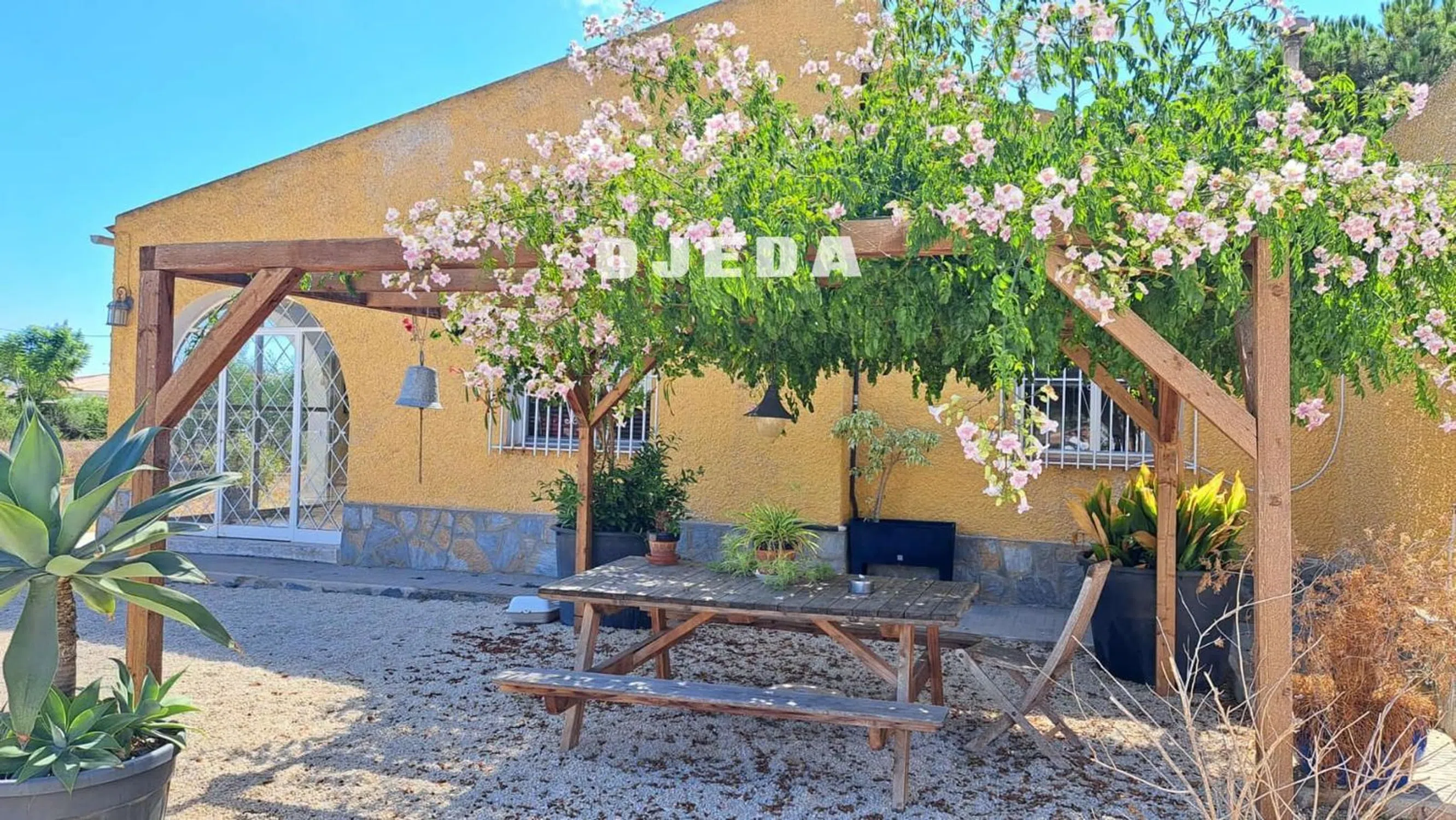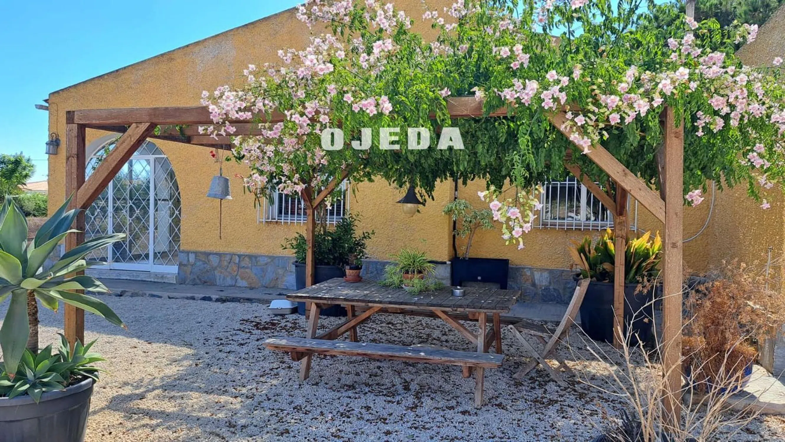Precioso chalet situado a pocos metros de Elche, Alicante, Santa Pola. Consta de 3 dormitorios, 2 baños, cocina, gran patio con barbacoa y lugar de relax, garaje, zona protegida para coches, piscina, gran casa independiente con jardín para invitados. Su pardela es de unos 2.000 metros cuadrados. La casa tiene una bonita distribución que es muy confortable al estar todo situado en el mismo nivel. Tiene zonas exteriores con un gran pino y vegetación para que la estancia en los meses de calor sea más llevadera, sus varias pérgolas exteriores y en zona de piscina lo hacen de lo más agradable. A destacar que es una urbanización donde se vive todo el año, estando acompañado de otros residentes. Un gran lugar donde instalarse.