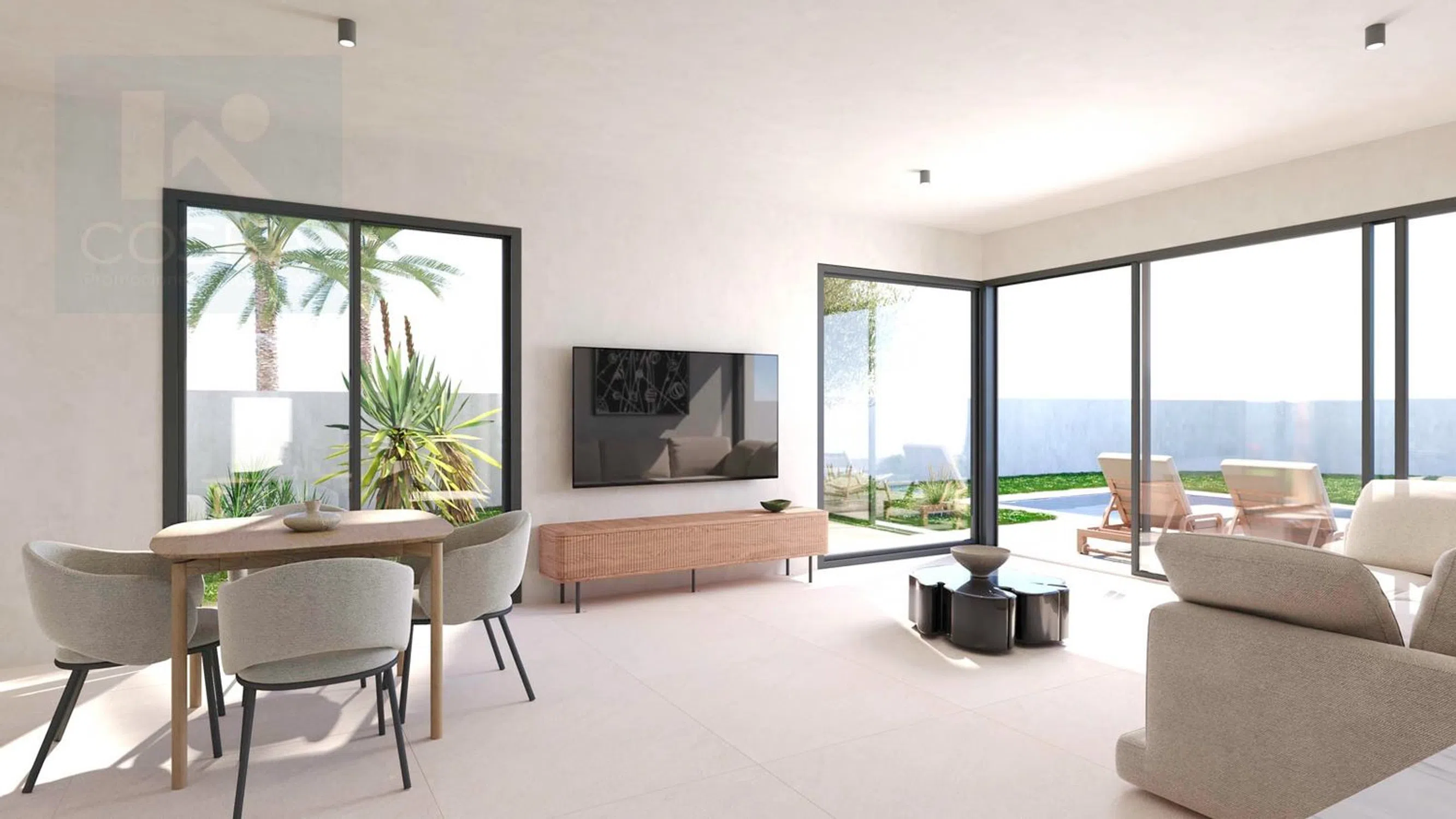 COSBA le ofrece una nueva promoción de viviendas unifamiliares con parcela y piscina propia a un paso de playa y de servicios en Els Poblets. Viviendas en una sola planta de 125 m2 construidos distribuidos en hall de entrada, 3 dormitorios dobles con armarios empotrados, 2 baños completos (1 de ellos en suit), cocina americana, salón comedor y amplio lavadero-despensa. Parcela de 500 m2, soleada y totalmente llana. Piscina de 4 x 8 m. con foco LED, terraza, muros de calle y vecinales para dotar de independencia, zona de aparcamiento y puerta corredera para vehículos y puerta peatonal. SOSTENIBILIDAD. Una de nuestras premisas es construir casas sostenibles, por eso realizamos un gran esfuerzo incluyendo, en el precio base, elementos para garantilarlo. Grandes ventanales de aluminio con puente térmico y doble cristal con Guardiansun (aislamiento térmico y control solar), permite el paso de la luz natural sin afectar la temperatura interior. Paredes, suelos y tejado con aislamiento térmico y detalles en mampostería en pared interior y exterior para ofrecer calidez al diseño. Aire acondicionado por conductos con sistema Airzone, para controlar la temperatura de cada estancia de forma independiente (a través del termostato o del dispositivo móvil). Persianas automáticas para mayor comodidad. La vivienda viene dotada con un sistema de ventilación mecánica de doble flujo con recuperador de calor, sistema que permite mantener una constante renovación de aire en la vivienda sin necesidad de abrir ventanas. Además, obtiene un aire de mayor calidad y evita pérdidas en la temperatura confort del hogar, entre otros beneficios como reducir los costos de calefacción y refrigeración y tener un suministro constante de aire fresco y filtrado en la casa, evitando así que aparezca moho, hongos ni condesación cuando no está. Además de todos estos sistemas, se añade una instalación fotovoltáica compuesta por una placa de unos 550 Kw y 1 microinversor. Todo ello en un maravilloso y tranquilo enclave, Els Poblets, a un paso del pueblo (menos de 1 km. del centro) y a 1,5 kms. de playa. A 600 m. de grandes supermercados y tiendas. Dénia a tan solo 8 kms. y entrada y salida de autopista a escasos minutos. A 10 kms. de los campos de Golf de Oliva Nova y de La Sella. Si a todo esto le sumamos que se trata de un diseño en una sola planta, tenemos un inmueble confortable, acogedor e ideal para vivir todo el año. Y todo ello con la garantía de COSBA, desde 1983 dando forma a los sueños de nuestros clientes. Proyecto de tan solo 5 unidades, a partir de 585.000 €.