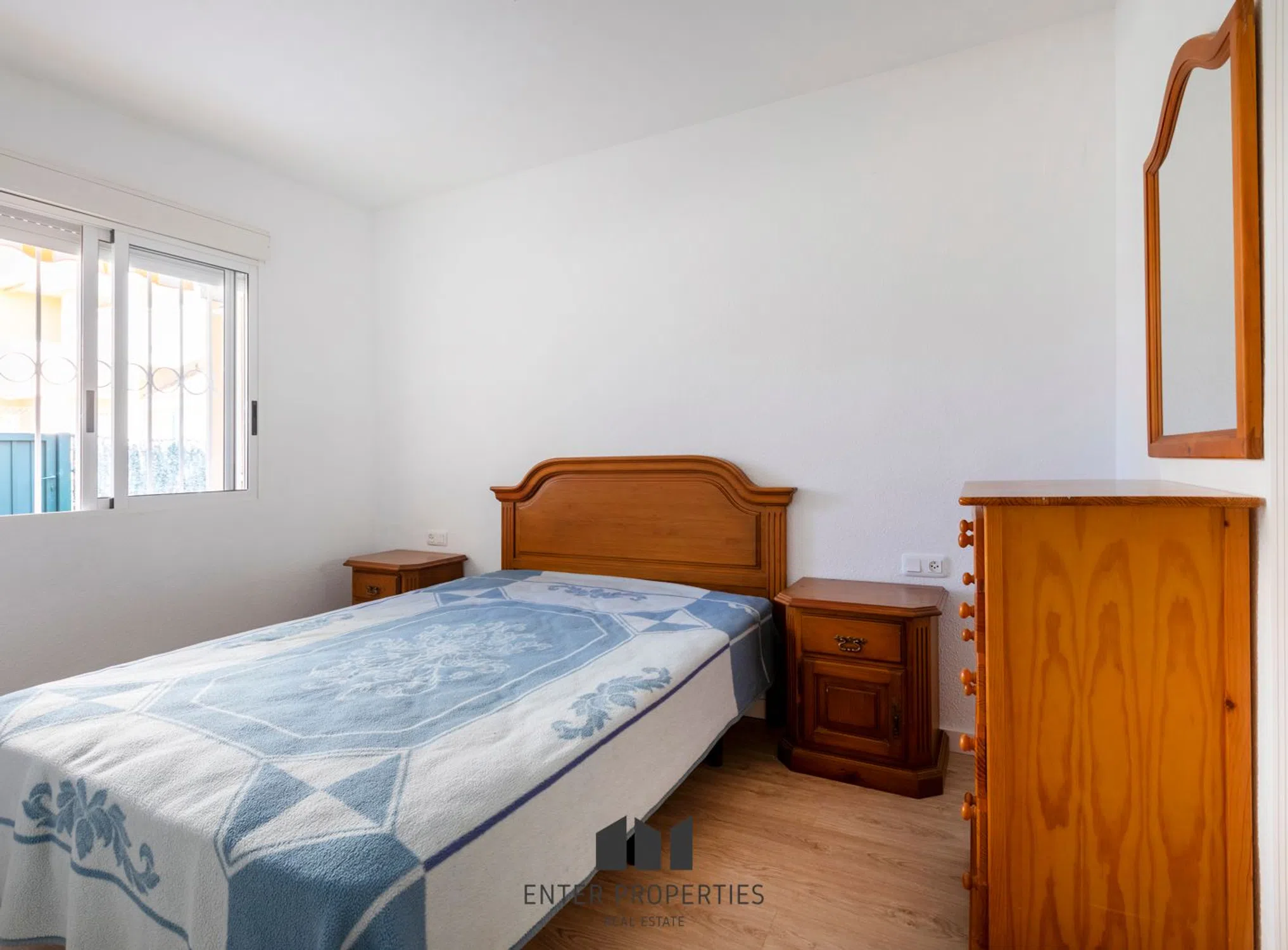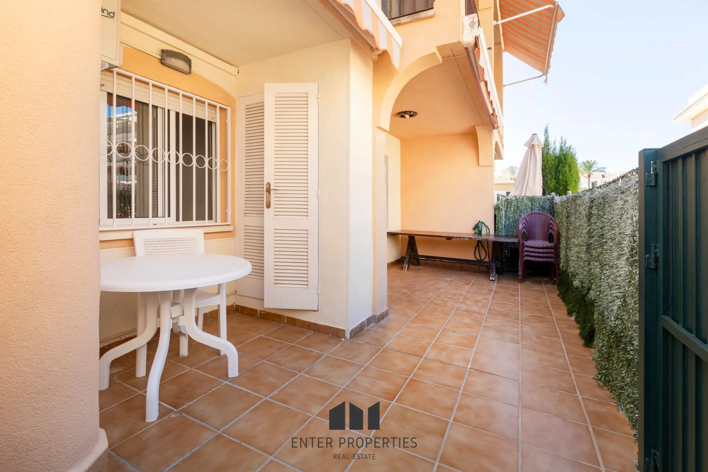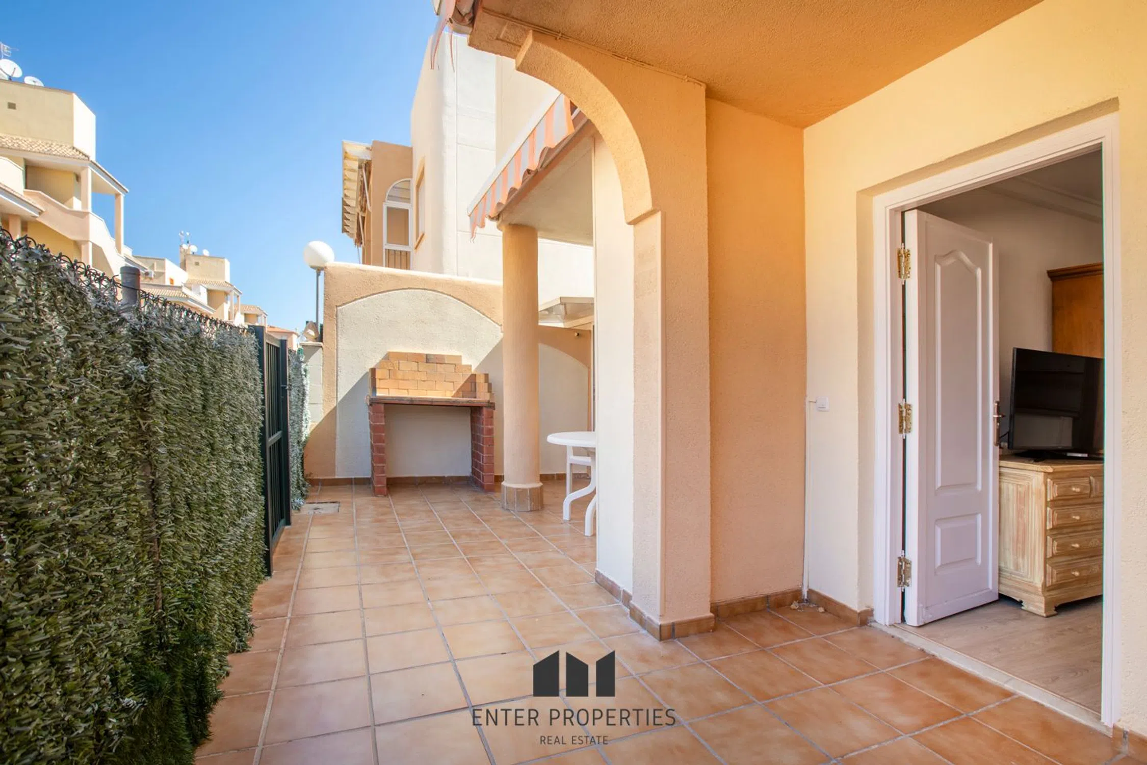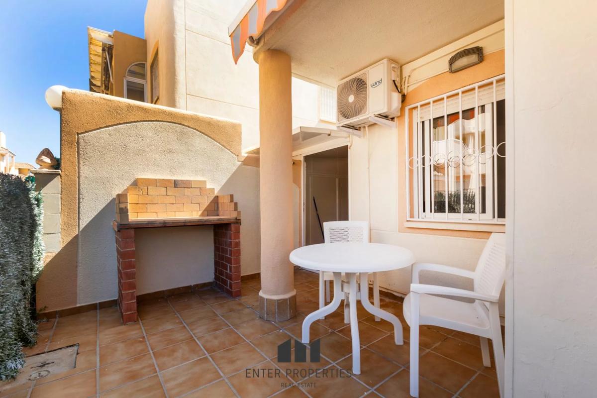 Encantador adosado en planta baja en La Almadrava, Denia – Con terraza privada y piscina comunitaria Descubra este acogedor adosado en planta baja ubicado en un residencial tranquilo en La Almadrava, zona Estanyo, Denia. Con 52 m² construidos y una distribución funcional, esta propiedad ofrece el equilibrio perfecto entre comodidad, privacidad y cercanía al mar. La vivienda cuenta con dos luminosas habitaciones equipadas con prácticos armarios empotrados y puertas de madera, un baño completo de generosas dimensiones y una cocina de concepto abierto integrada al salón-comedor, creando un espacio ideal para compartir momentos en familia. Las ventanas con climalit aseguran aislamiento térmico y acústico para un confort total en cualquier época del año. En el exterior, disfrutará de una amplia terraza privada con barbacoa, perfecta para reuniones al aire libre, cenas veraniegas o simplemente relajarse. La urbanización ofrece además una piscina comunitaria impecablemente mantenida, ideal para refrescarse en los días más cálidos, así como plaza de garaje y trastero incluidos para mayor comodidad. Construido en 1995, el adosado se encuentra en excelente estado de conservación, listo para entrar a vivir o como una atractiva inversión para alquiler vacacional. Su ubicación es inmejorable: rodeado de servicios, con supermercados, restaurantes y comercios a pocos minutos, y a tan solo 5 minutos a pie de las tranquilas playas de arena de Denia. Un hogar versátil y acogedor, perfecto tanto como residencia habitual como para disfrutar de escapadas al Mediterráneo. Agende hoy mismo una videollamada con nuestro equipo y descubra cada detalle de esta propiedad única. Charming Ground Floor Townhouse in La Almadrava, Denia – With Private Terrace and Communal Pool Discover this cozy ground floor townhouse located in a quiet residential area of La Almadrava, Estanyo, Denia. With 52 sqm of built space and a functional layout, this property offers the perfect balance between comfort, privacy, and proximity to the sea. The home features two bright bedrooms with practical built-in wardrobes and wooden doors, a generously sized full bathroom, and an open-plan kitchen seamlessly connected to the living-dining area – an ideal space for family gatherings. The double-glazed windows (Climalit) ensure excellent thermal and acoustic insulation for year-round comfort. Outside, you’ll enjoy a spacious private terrace with a built-in barbecue, perfect for outdoor gatherings, summer dinners, or simply relaxing. The complex also offers a beautifully maintained communal pool, ideal for cooling off on warm days, along with a private parking space and storage room for added convenience. Built in 1995, the property is in excellent condition, ready to move in or to serve as a highly attractive holiday rental investment. Its location is unbeatable: surrounded by amenities with supermarkets, restaurants, and shops just minutes away, and only a 5-minute walk to Denia’s tranquil sandy beaches. A versatile and welcoming home, ideal both as a permanent residence or for enjoying getaways on the Mediterranean coast. Schedule a video call with our team today and discover every detail of this unique property.