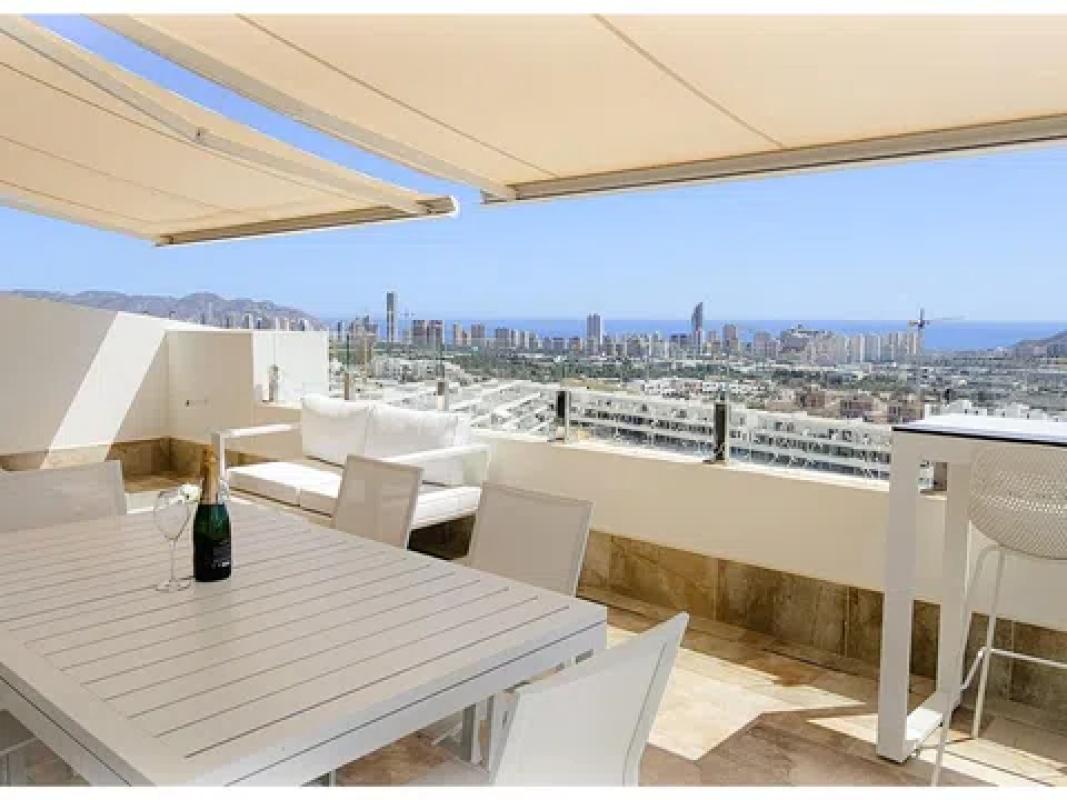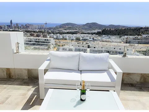 Impecable apartamento de 2 dormitorios y 2 baños situado en la tercera planta. Esquina derecha, en la prestigiosa urbanización de Camporrosso Village en la zona de Golf Bahía /Sierra Cortina, Balco de Finestrat. Este apartamento está excepcionalmente bien situado en una parcela elevada, ofreciendo una de las vistas más espectaculares del horizonte de Benidorm y el mar Mediterráneo. Situado en lo alto del complejo, mira hacia la ciudad y la costa, creando una verdadera sensación de amplitud. En la amplia terraza se puede disfrutar del sol desde el amanecer hasta el atardecer durante todo el año, una combinación poco común en la Costa Blanca. El piso fue construido en 2021 y sólo se ha utilizado durante 20 semanas, pero todavía parece nuevo. Totalmente amueblado, sin usar, amueblado con muebles de estilo y electrodomésticos modernos. Todos los muebles y electrodomésticos están incluidos en el precio de venta. Medidas principales: Superficie interior útil: 101,55 m² Terraza: 36,62 m² Superficie total construida: 115,31 m² Amplia terraza soleada con vistas panorámicas Trastero privado situado una planta por debajo del piso. Plaza de aparcamiento cubierta en un garaje cerrado con videovigilancia, a pocos pasos del ascensor. Elegante vestíbulo común que da servicio a sólo tres pisos por planta Comunidad tranquila y exclusiva con vecinos amables Tres piscinas al aire libre (dos con socorristas de temporada) Piscina cubierta climatizada de agua salada, gimnasio de última generación y sauna.