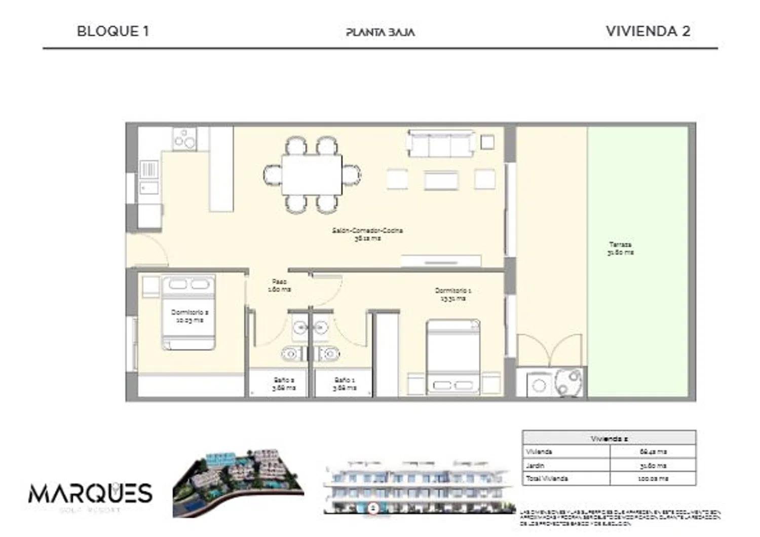 Discover your new home in a Mediterranean paradise! This stunning apartment boasts a generous layout, offering 100 m² of constructed space and 95 m² of practical living area, all within an exclusive residential community designed for ultimate comfort and style. Featuring two bedrooms and two bathrooms, the property stands out for its energy efficiency (Class A) and modern design.