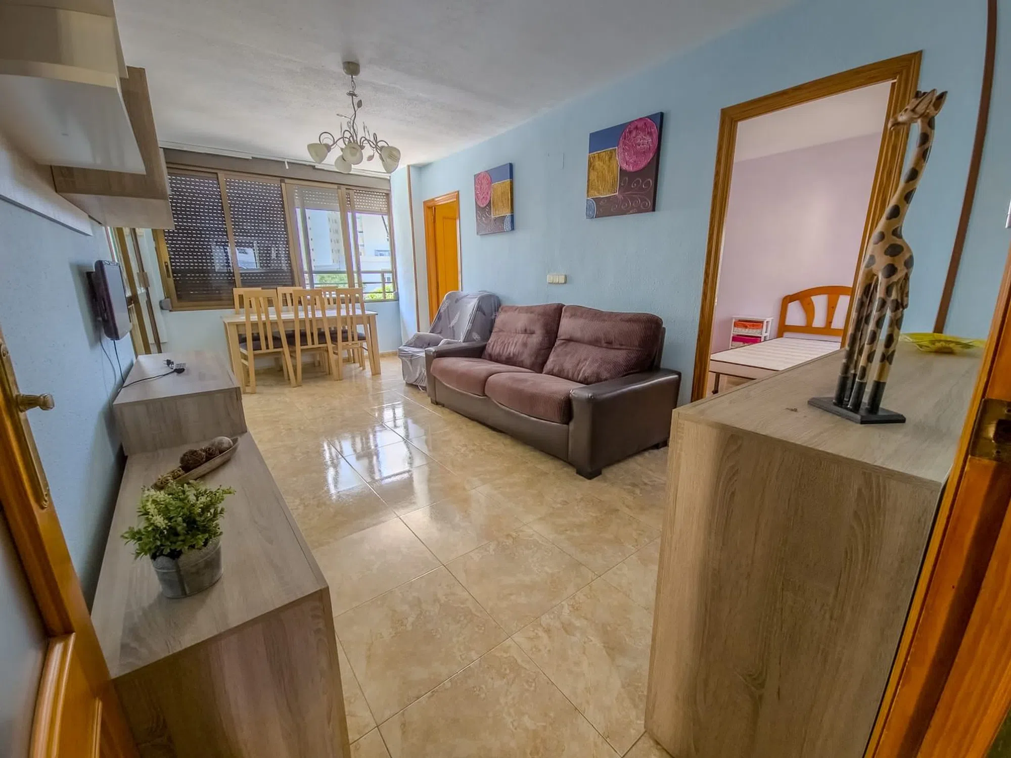� Piso luminoso en buen estado con terraza y parque infantil Este piso de 85 m² construidos (80 m² útiles) es una gran oportunidad para quienes buscan comodidad y buena ubicación. ✨ Características de la vivienda 3 dormitorios amplios 1 baño completo Salón–comedor con acceso a terraza Cocina equipada Armarios empotrados Con ascensor Estado de conservación: Buen estado � Orientación Vivienda exterior, con orientación norte, sur, este y oeste ⚡ Instalaciones y confort Aire acondicionado Calefacción individual eléctrica Adaptado a personas con movilidad reducida � Zonas comunes Parque infantil Piscina � Situación legal Vivienda libre de ocupación o situaciones excepcionales. � Una vivienda práctica, luminosa y bien cuidada, con todo lo que necesitas para entrar a vivir y disfrutar en familia. Bright apartment in good condition with terrace and children’s playground This 85 m² built (80 m² usable) apartment is a great opportunity for those looking for comfort and a well-connected location. ✨ Property features 3 spacious bedrooms 1 full bathroom Living–dining room with access to the terrace Fully equipped kitchen Fitted wardrobes With elevator Condition: Good condition � Orientation Exterior apartment, facing north, south, east and west ⚡ Comfort & facilities Air conditioning Individual electric heating Adapted for people with reduced mobility � Communal areas Children’s playground Swimming pool � Legal situation Free from occupation or exceptional situations. � A practical, bright, and well-maintained apartment, ready to move into and enjoy with your family.