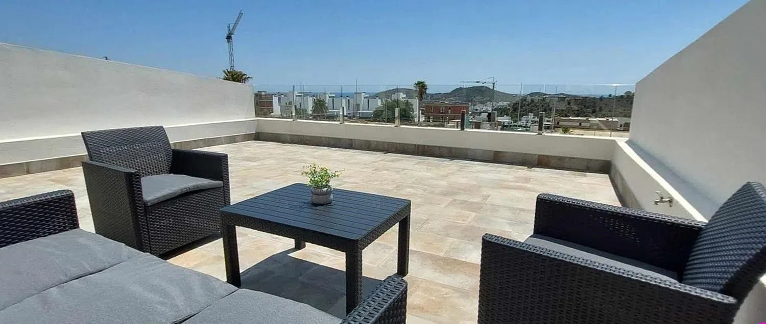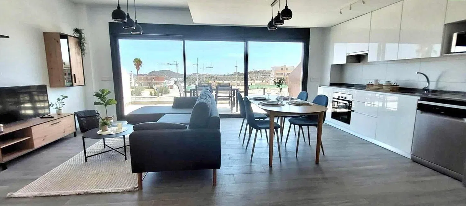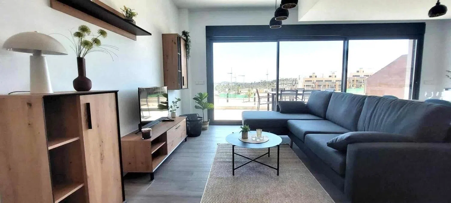 This stunning property boasts an expansive living space of 196 m² and is perfectly oriented to capture the sun. Located just minutes away from shopping centers, supermarkets, and a prestigious golf course, it promises both convenience and leisure. The open-plan living and dining area seamlessly connects to a spacious terrace, while the fully equipped kitchen is ideal for culinary enthusiasts. Featuring two comfortable bedrooms and two bathrooms, the layout ensures ample privacy for residents. On the upper floor, an additional bedroom opens onto a generous solarium terrace, providing the perfect spot to soak up the warmth of the Spanish sun.