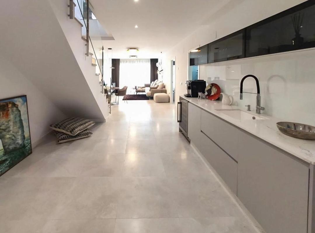 Exclusivo Dúplex de Lujo en Venta en Camporrosso Village, Finestrat – Vistas al Mar y Equipamiento Premium Te presentamos esta magnífica propiedad tipo dúplex en venta en la prestigiosa urbanización Camporrosso Village, en Finestrat, construida en el año 2021. Con una superficie total de 223 m² distribuidos en dos plantas, esta vivienda ofrece el máximo confort, diseño contemporáneo y unas vistas incomparables al mar Mediterráneo. Distribución: Planta inferior: Garaje privado. Recibidor. Cocina totalmente equipada. Cuarto de baño completo. Salón amplio y luminoso. Dormitorio doble. Jardín privado con zona verde. Zona técnica / lavadero. Planta superior: Elegante terraza ajardinada. Recibidor. Segunda cocina moderna. 2 baños completos. Segundo salón con acceso a terraza. 2 dormitorios dobles. Terraza con espectaculares vistas panorámicas al mar. Equipamiento de alta gama: Mobiliario alemán de diseño y decoración en estilo moderno y minimalista. Iluminación italiana, obras de arte (incluyendo reproducciones de Claude Monet). Electrodomésticos de alta gama, incluyendo vinoteca. Accesorios y menaje premium: vajilla italiana, cuchillería portuguesa, textiles naturales de gran calidad (sábanas, almohadas, edredones). Aire acondicionado, Wi-Fi, toldo eléctrico, sistema de alarma y zona de trabajo con ordenador. Zonas comunes excepcionales: 5 piscinas exteriores. Piscina climatizada interior. Gimnasio interior y exterior. Sauna. 2 pistas de pádel. Zona infantil. Este dúplex ofrece una experiencia residencial única, con todas las comodidades y el lujo que se espera de una urbanización de primer nivel. Ideal como residencia habitual, segunda vivienda o inversión de alta rentabilidad en la Costa Blanca.