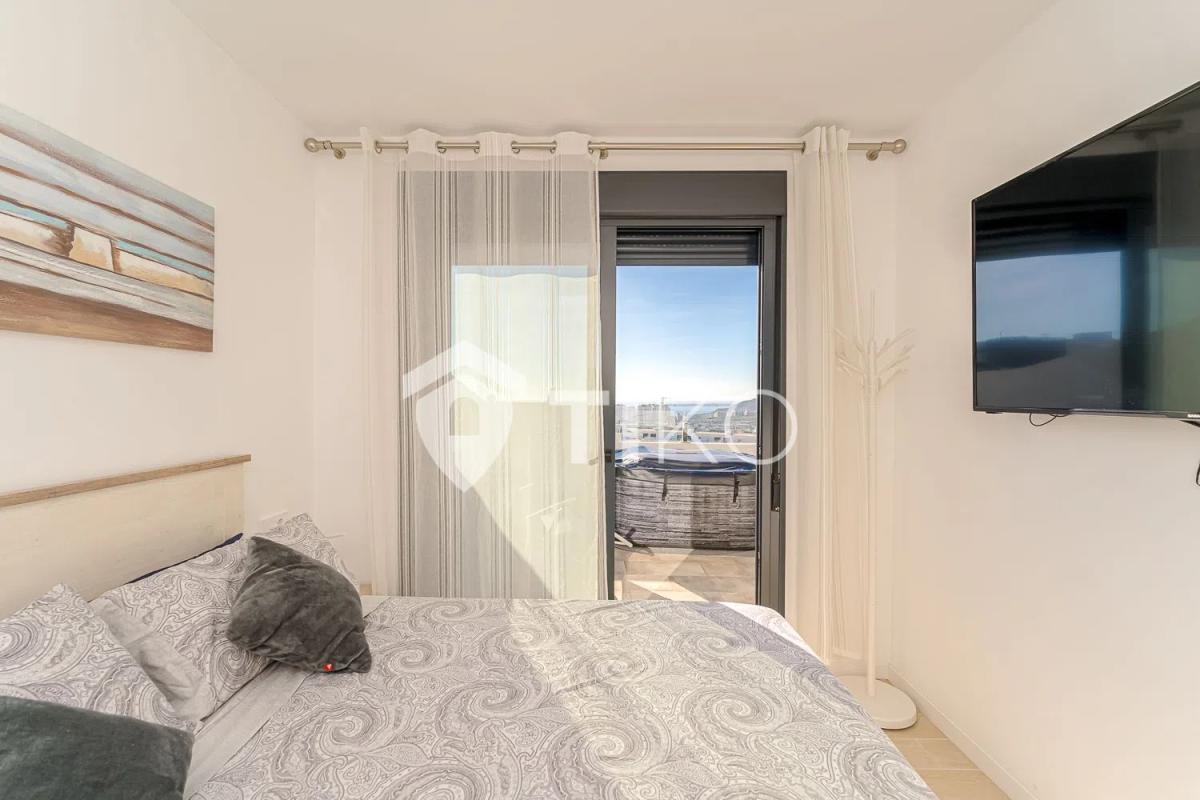 Contact us and come visit this fantastic apartment. This spacious 129 m² penthouse is situated in the beautiful Finestrat area, offering a perfect living space for couples and investors alike. The open-concept living room is bright and inviting, seamlessly connected to a well-furnished American kitchen. This property includes two cozy bedrooms and two complete bathrooms, ensuring ample comfort for its residents.