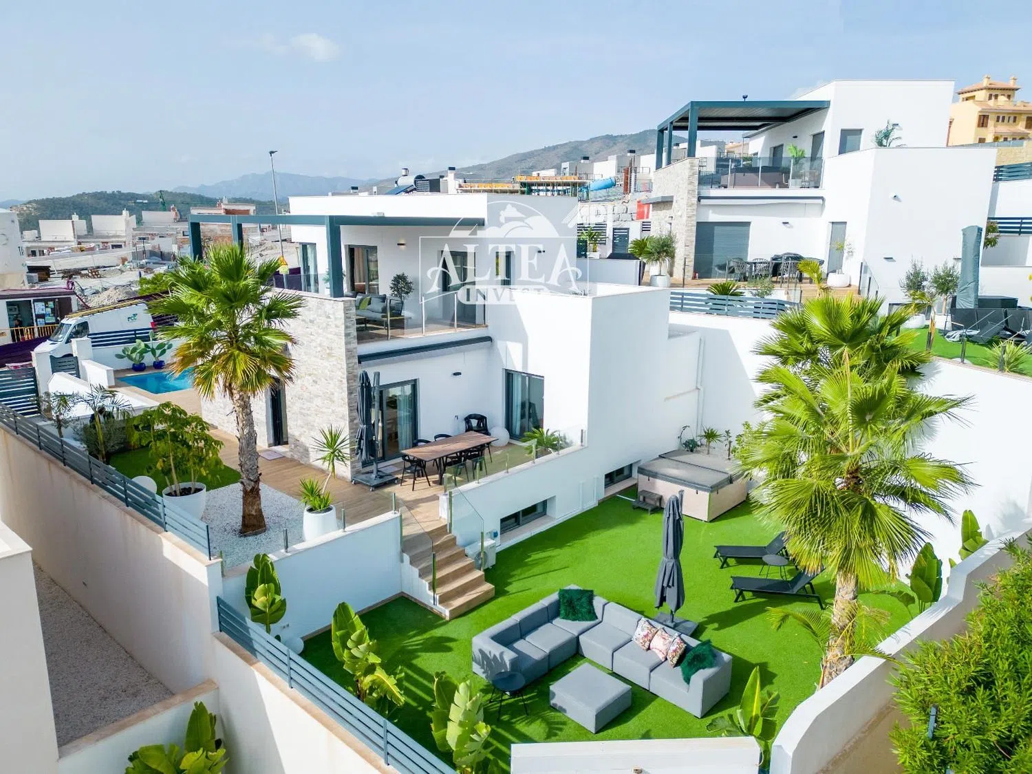 With three bedrooms and three bathrooms, this residence comfortably accommodates families and guests alike, making it ideal for those who cherish a relaxed yet refined lifestyle. The outdoor area stands out with a private pool that invites refreshing dips, surrounded by terraces and green spaces that ensure utmost privacy.