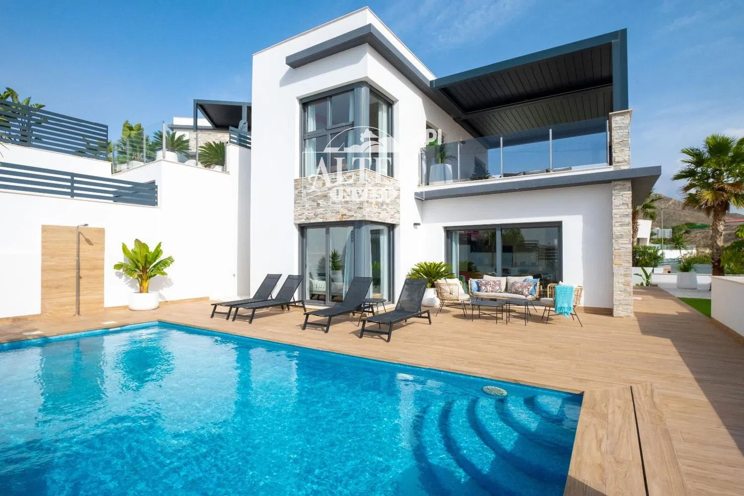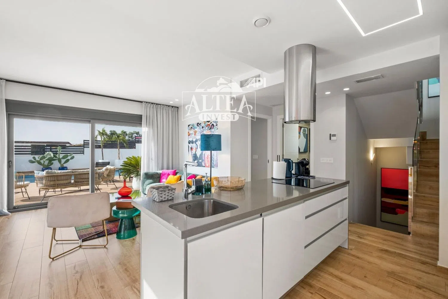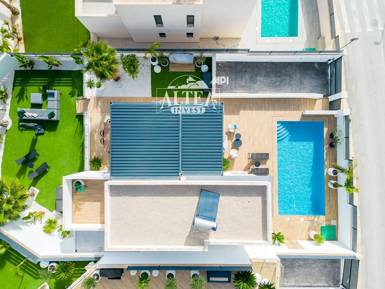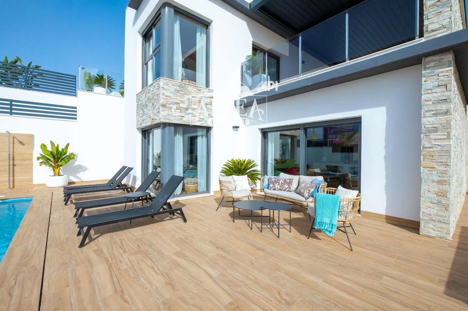Set on a generous 400 square meter plot, the property features a stylish pool enveloped by beautifully landscaped gardens, providing the perfect oasis for relaxation or social gatherings with family and friends.
