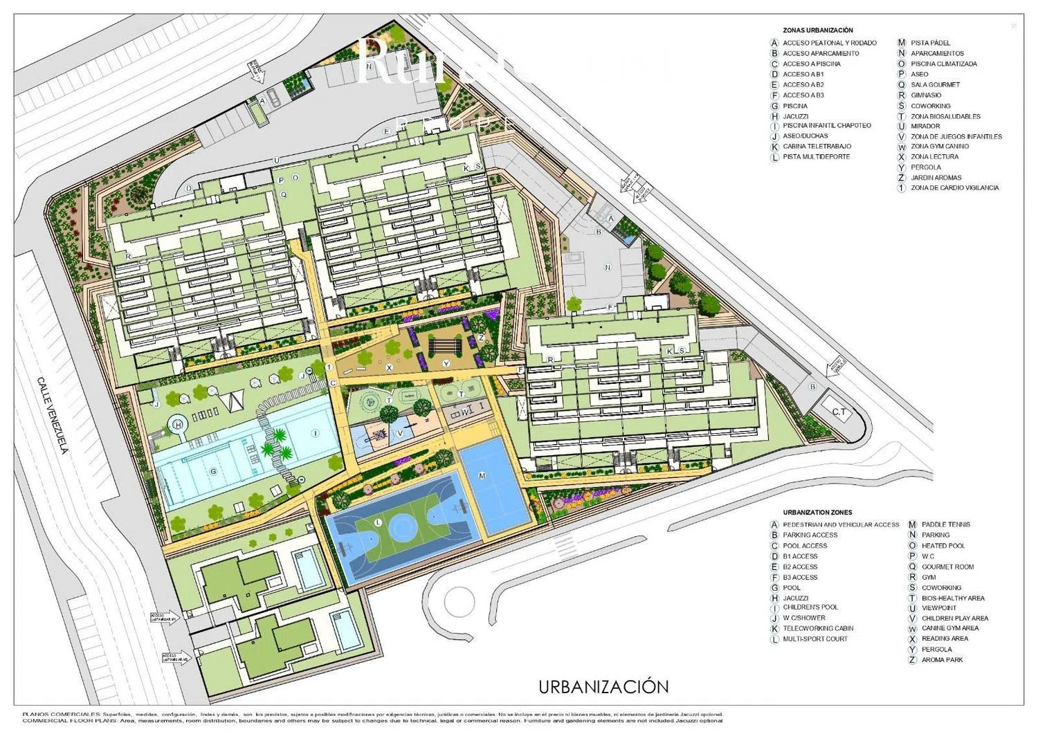 Equipped with the latest technologies for comfort, the villa includes climate control, aerothermal systems for hot water production, pre-installation for a jacuzzi, as well as thermal and acoustic insulation. The bathrooms are fitted with electric underfloor heating among other modern amenities. The residential complex also offers an array of facilities including sports areas, a heated swimming pool, outdoor pools, jacuzzis, showers, reading zones, a gym, relaxation areas, coworking spaces, remote work booths, cardio surveillance zones, 24-hour security, smart mailboxes, a dog gym, a fragrant garden, a gourmet room, lookout points, health games areas, and children's play zones.