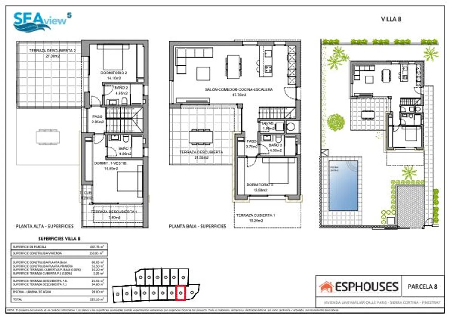 Step outside to enjoy your private pool and a beautifully landscaped garden that enhances your connection with nature. The generous plot of 447 square meters provides plenty of space for outdoor activities while ensuring your privacy.